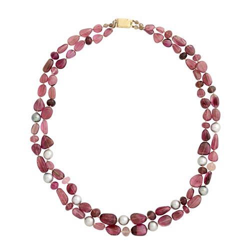 J KÖHLE, 14CT GOLD, TOURMALINE AND TAHITIAN PEARL NECKLACE