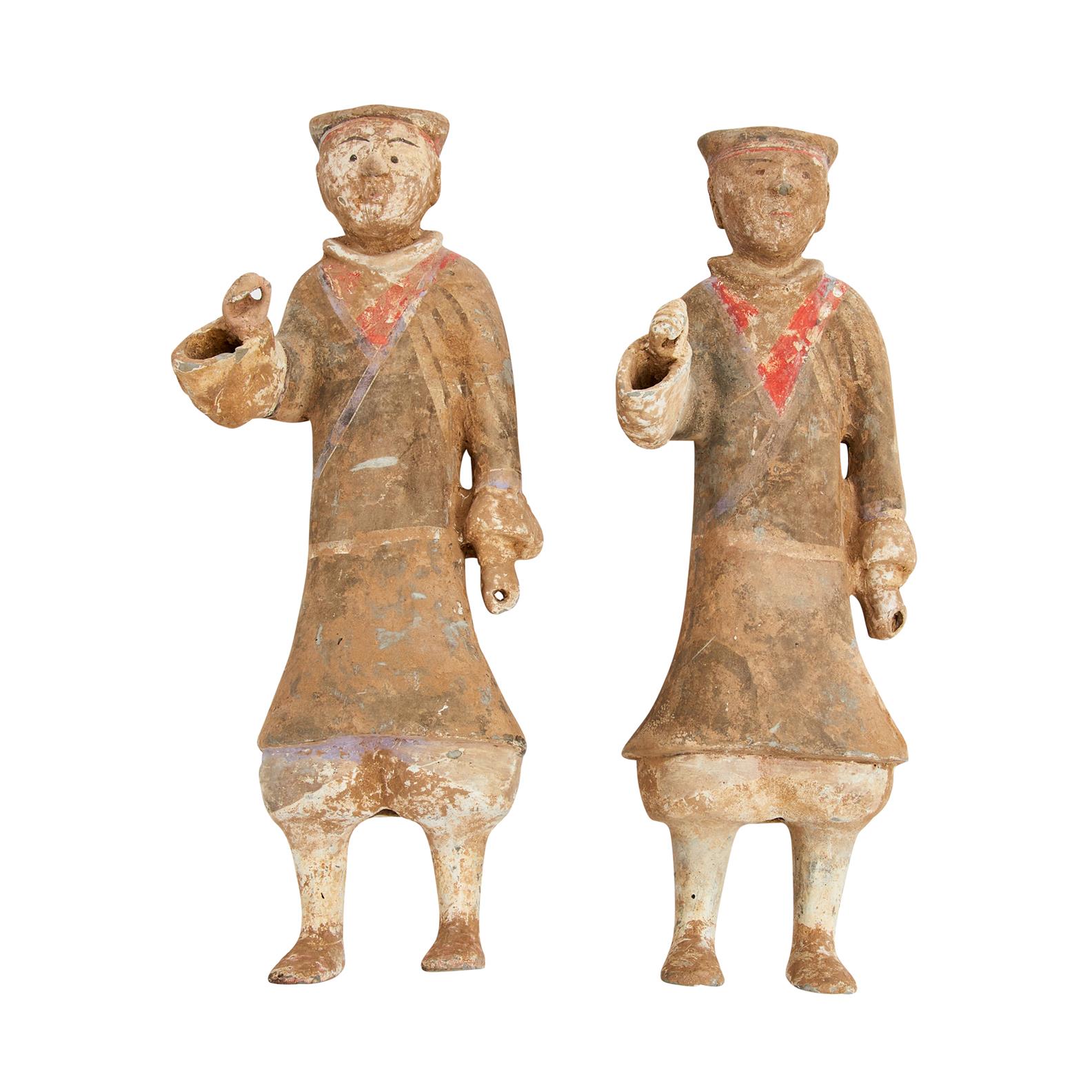 Considerable surface dirt, slight wear to areas of pigment no apparent breaks. Not TL tested but our understanding is that they are of the period.