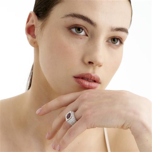 18CT WHITE GOLD, RUBY AND DIAMOND RING