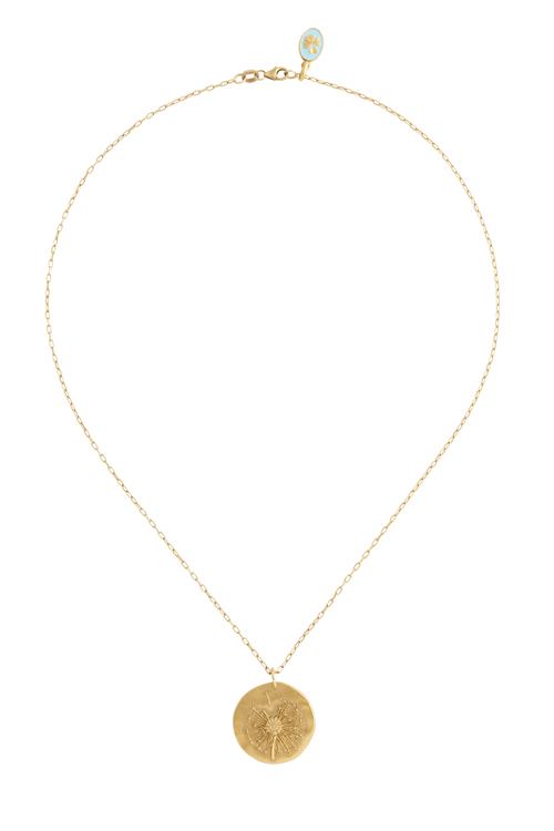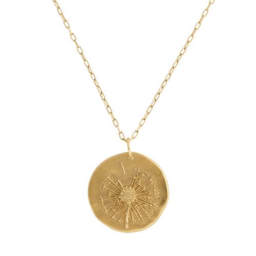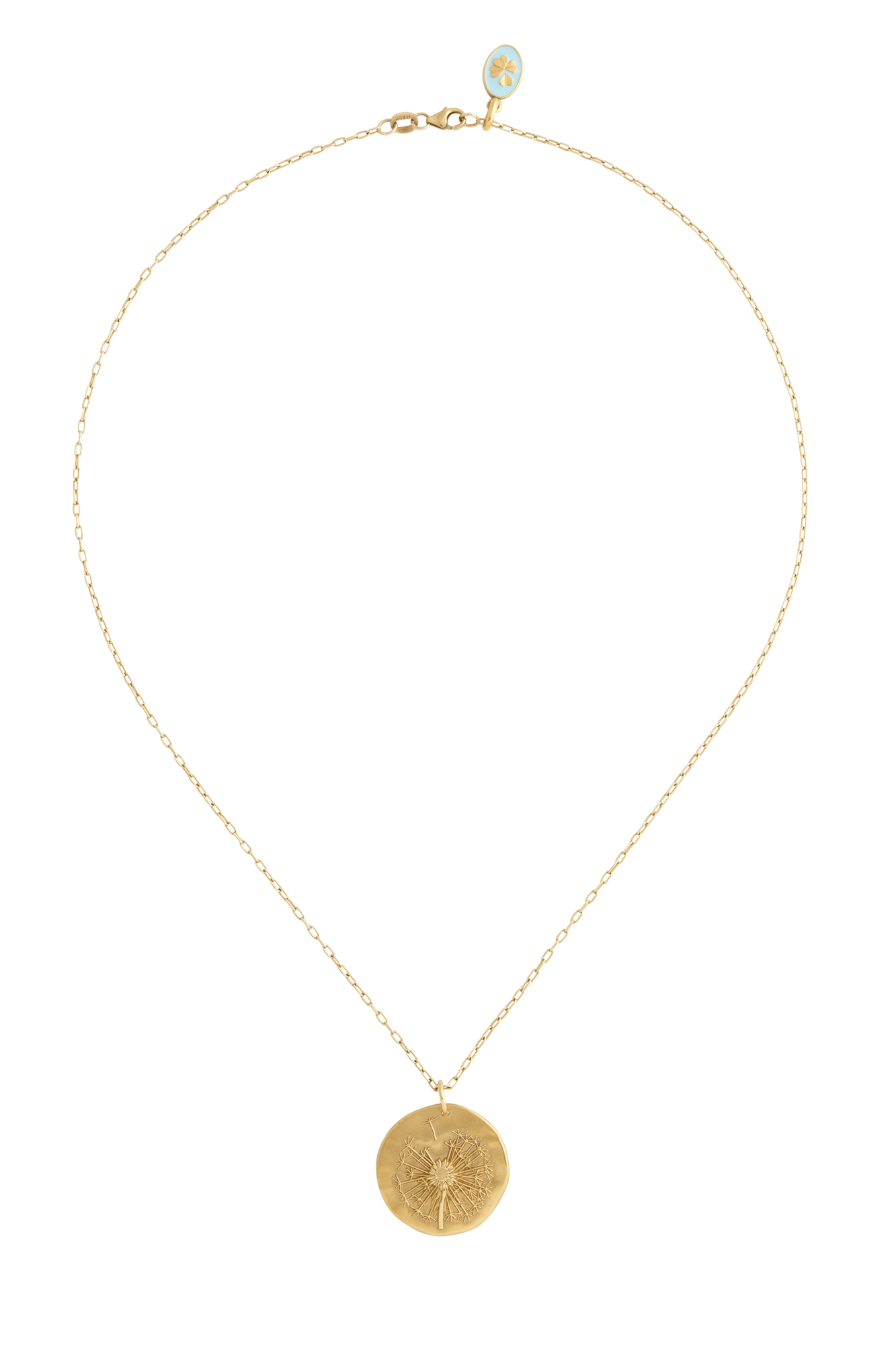 Modelled as a circular disc with applied dandelion motif, suspended from a cable link chain completed by a parrot clasp with enamel charm detail, signed AB for Arthus Bertrand, French marks, pendant diameter 24mm, length 440mm, gross weight approximately 9.5 grams.