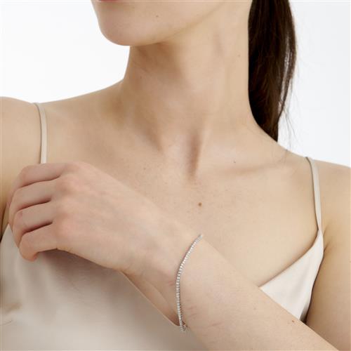 Modelled as a continuous line of ninety-five claw-set round brilliant-cut diamonds together weighing approximately 2.00 carats, completed by a concealed tongue and groove clasp, length 190mm, gross weight approximately 8.1 grams