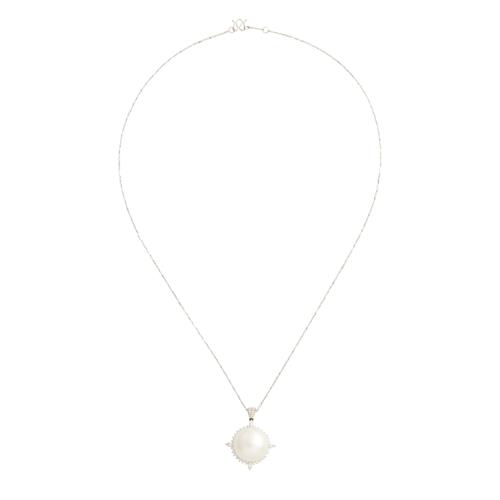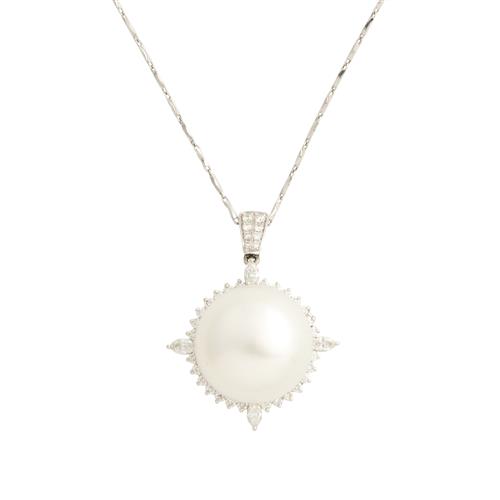 18CT WHITE GOLD, PLATINUM, SOUTH SEA PEARL AND DIAMOND PENDANT NECKLACE