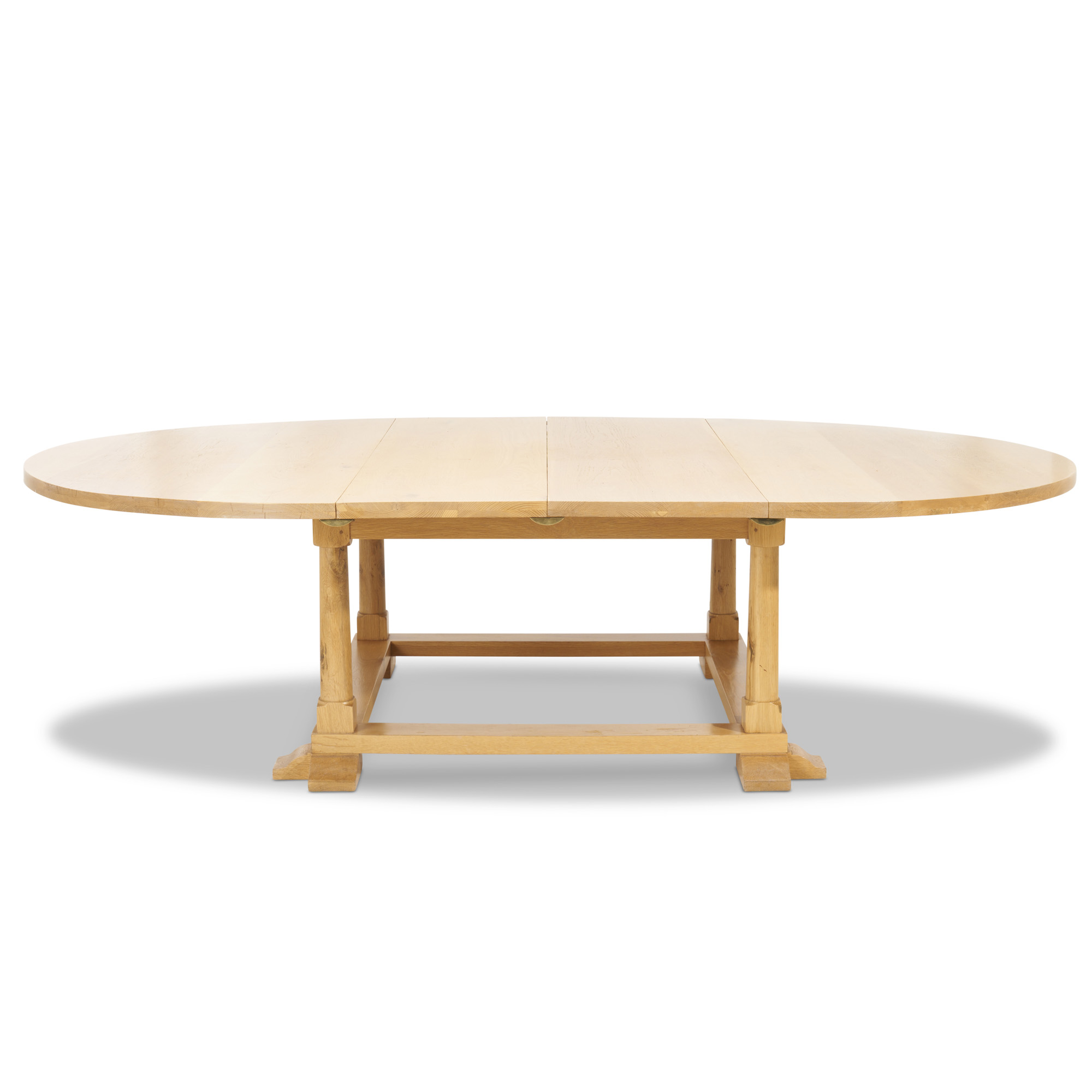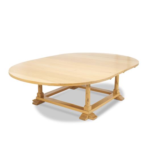 AN OAK EXTENDING DINING TABLE BY KIM MOIR