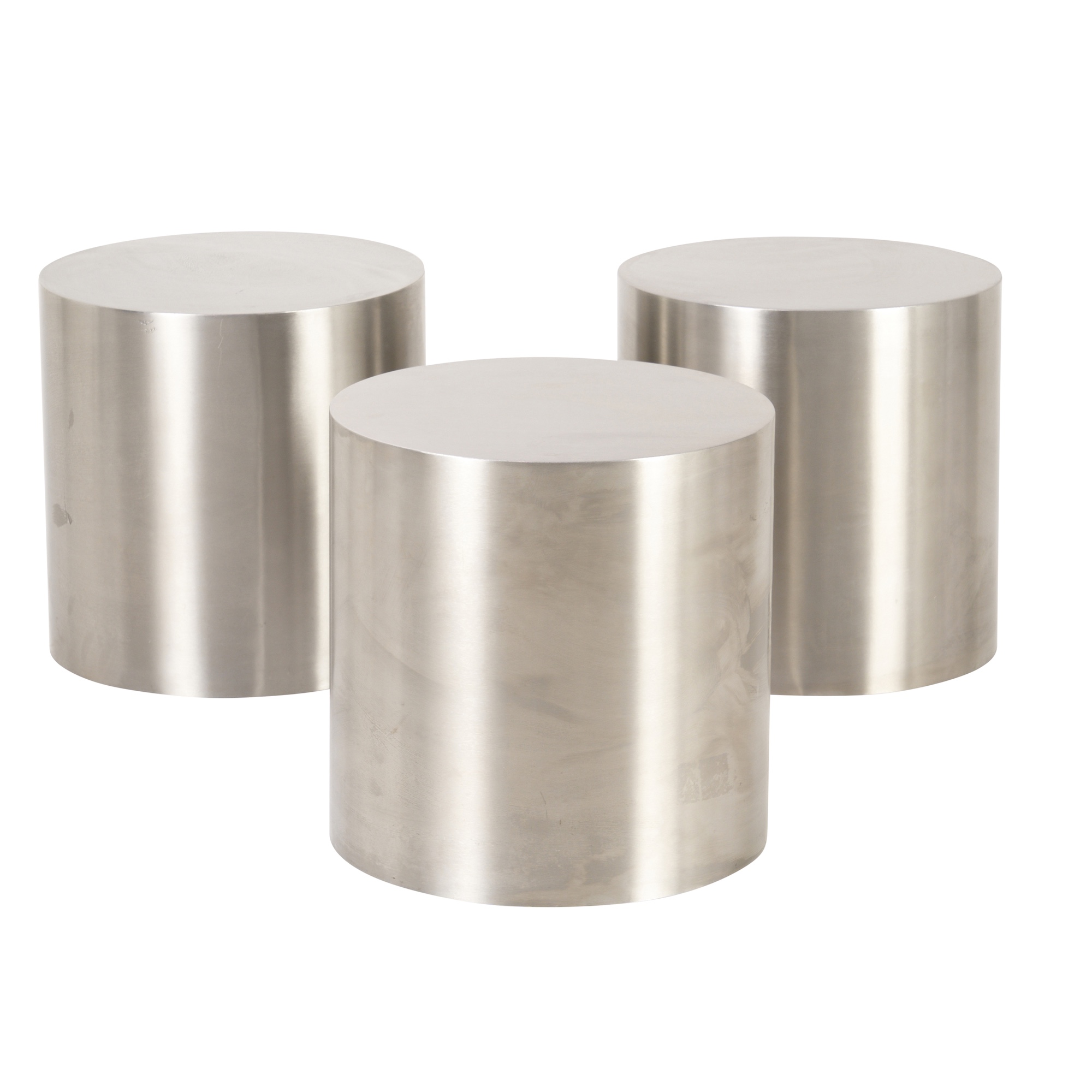 Cylindrical forms in brushed stainless steel.