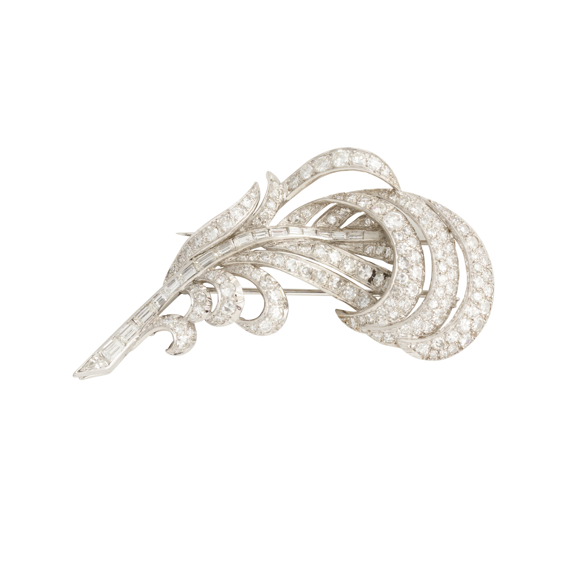 PLATINUM AND DIAMOND BROOCH, CIRCA 1955