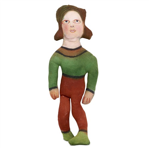 synthetic polymer paint on cotton soft sculpture doll, double-sided