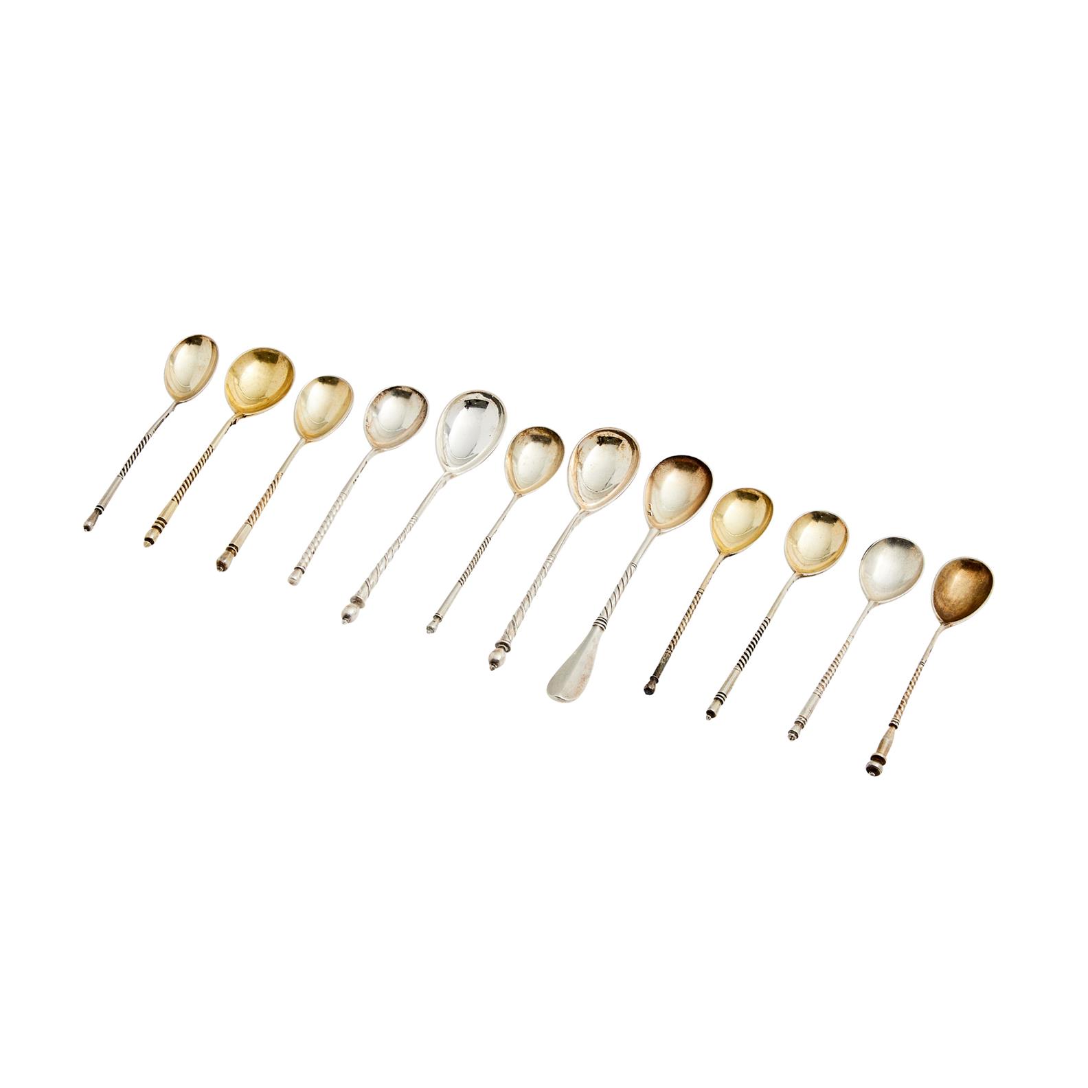 A COLLECTION OF TWELVE RUSSIAN SILVER TEASPOONS