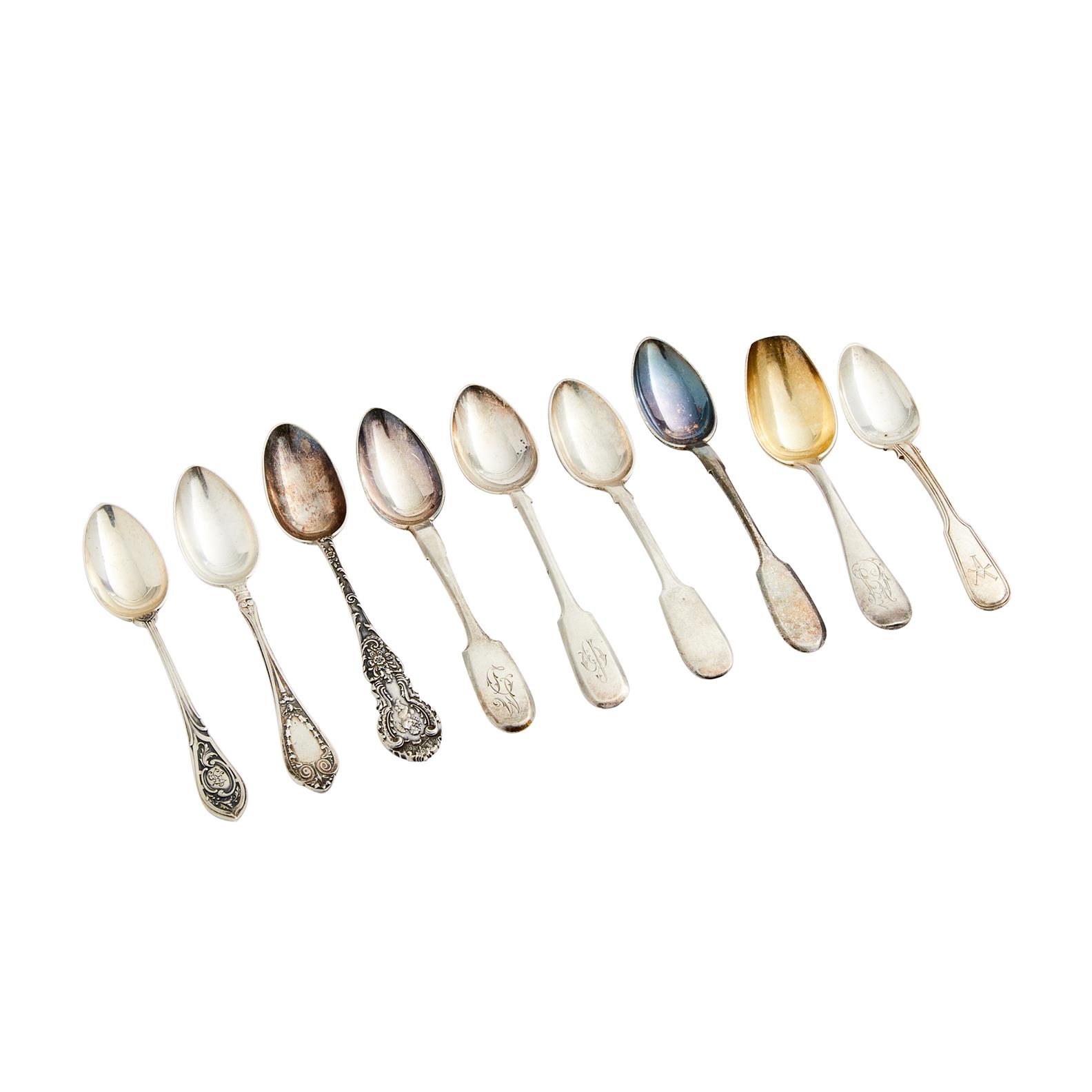 NINE VARIOUS RUSSIAN SILVER TEASPOONS