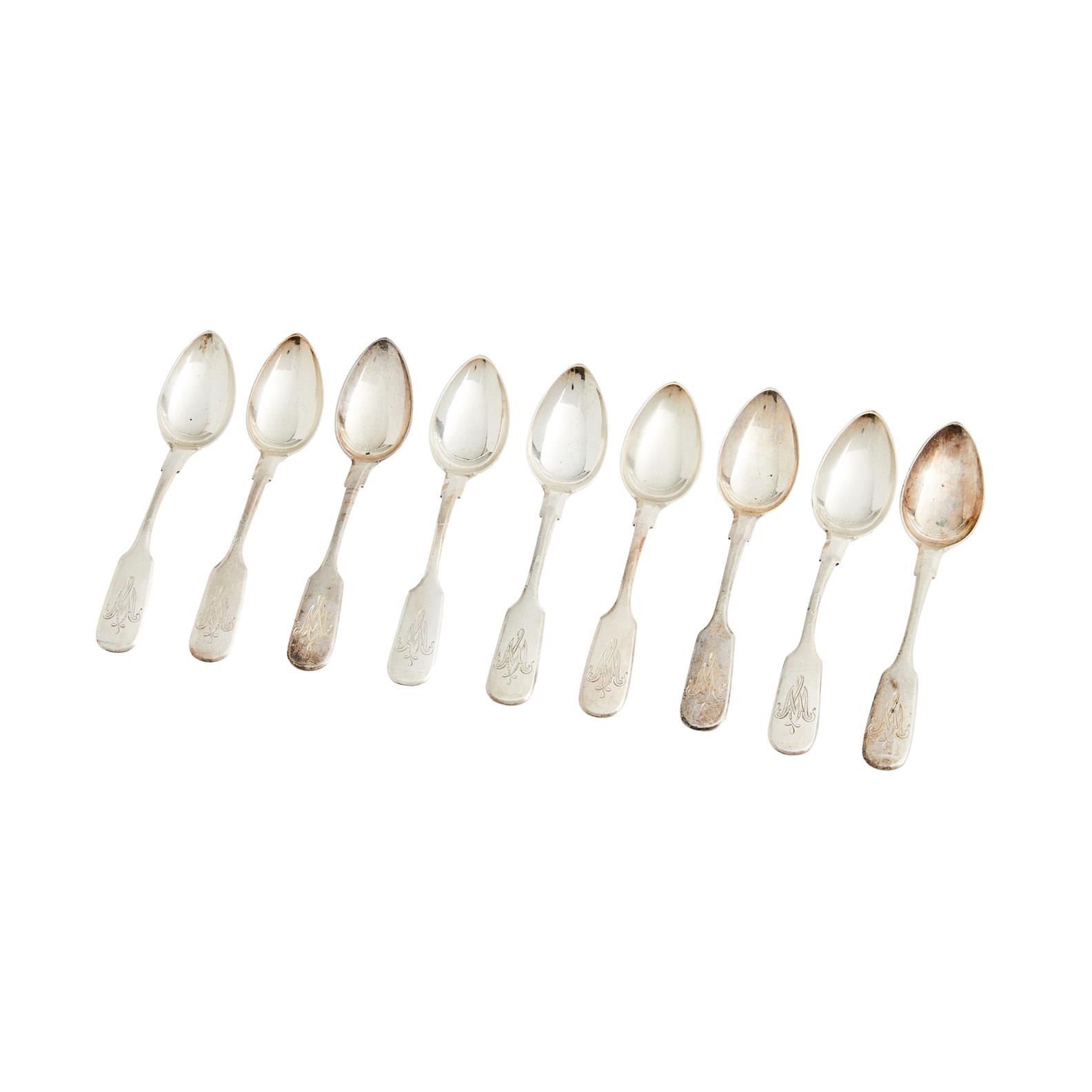 A SET OF NINE RUSSIAN SILVER FIDDLE PATTERN TEASPOONS