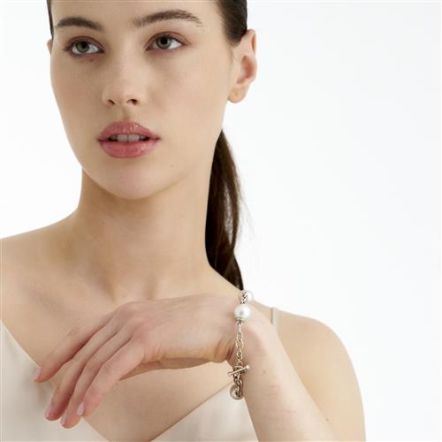 18CT WHITE GOLD, SOUTH SEA PEARL AND DIAMOND BRACELET