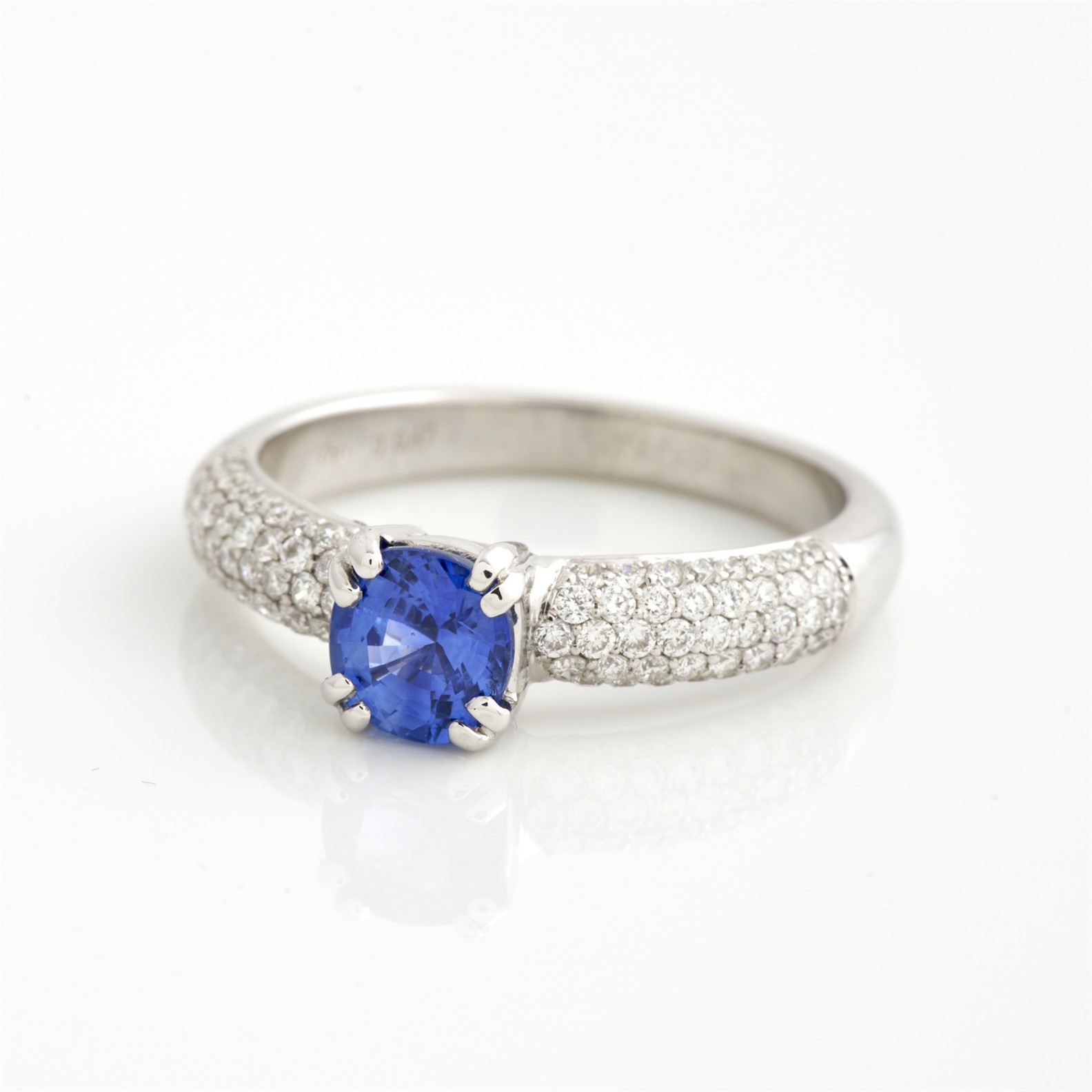 AN UNHEATED SAPPHIRE AND DIAMOND RING IN 18CT WHITE GOLD, THE SAPPHIRE WEIGHING 1.00CTS, THE DIAMONDS TOTALLING 0.47CTS, SIZE N1/2, 4.1GMS, ACCOMPANIED BY GEMSTONE CERTIFICATION AND VALUATION