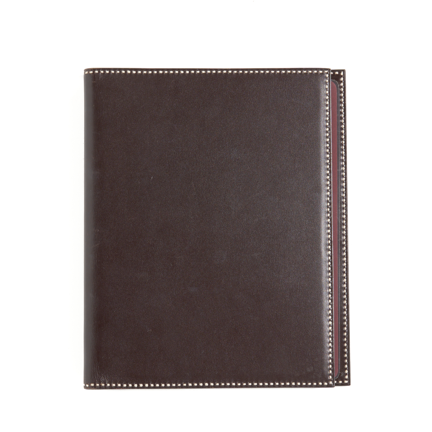 HERMÈS, A NOTEBOOK IN BROWN LEATHER WITH CONTRAST STITCHING DETAIL, INCLUDING A GOLD BRUSHED BURGUNDY NOTEBOOK AND FOLD OUT PAPER MAP, 23 X 19CM.