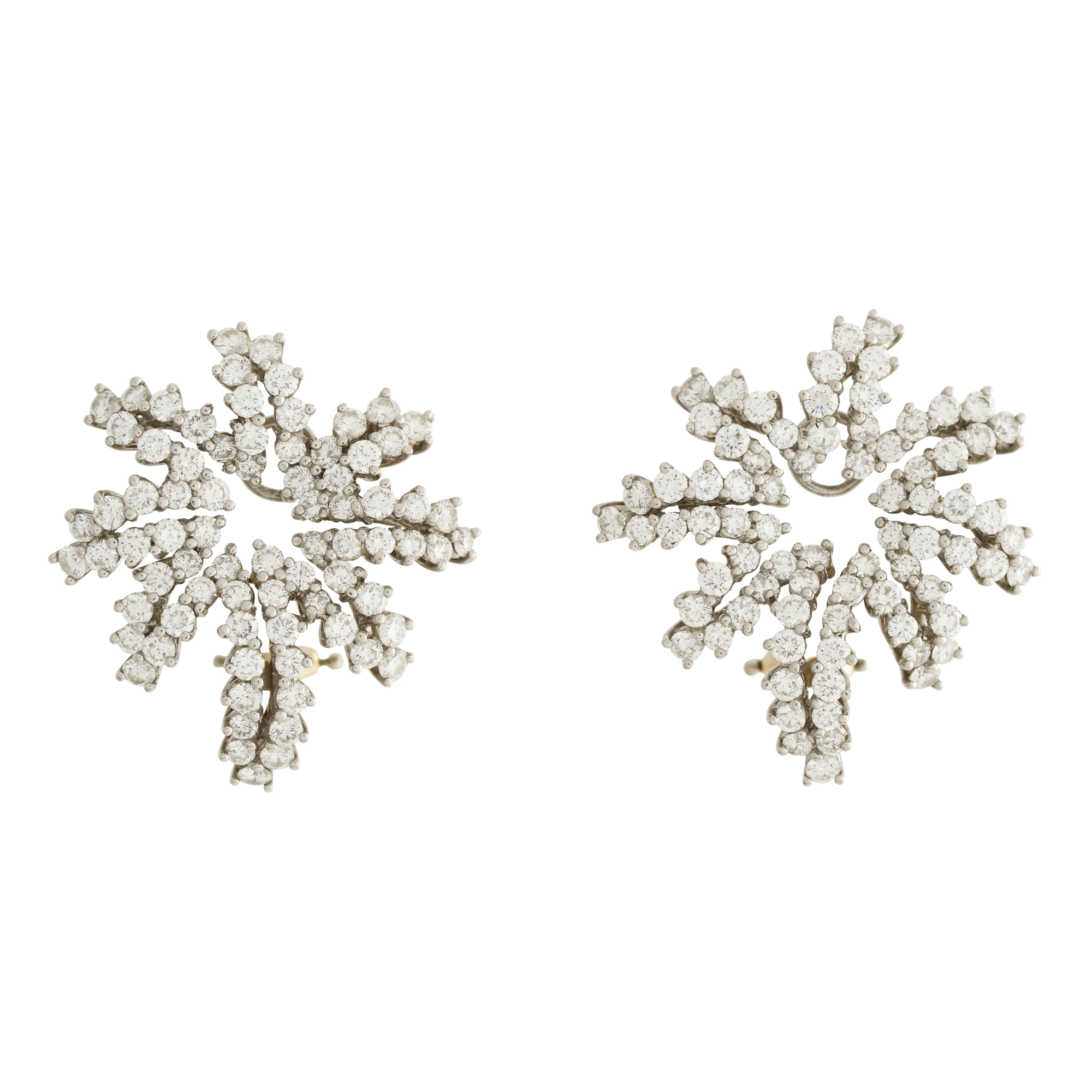 Each earring modelled as the outline of a firework, set throughout with claw-set round brilliant-cut diamonds together weighing approximately 5.40 carats, signed Tiffany & Co. 1993, to post and clip fittings, length 30mm, width 28mm, gross weight approximately 17.5 grams.