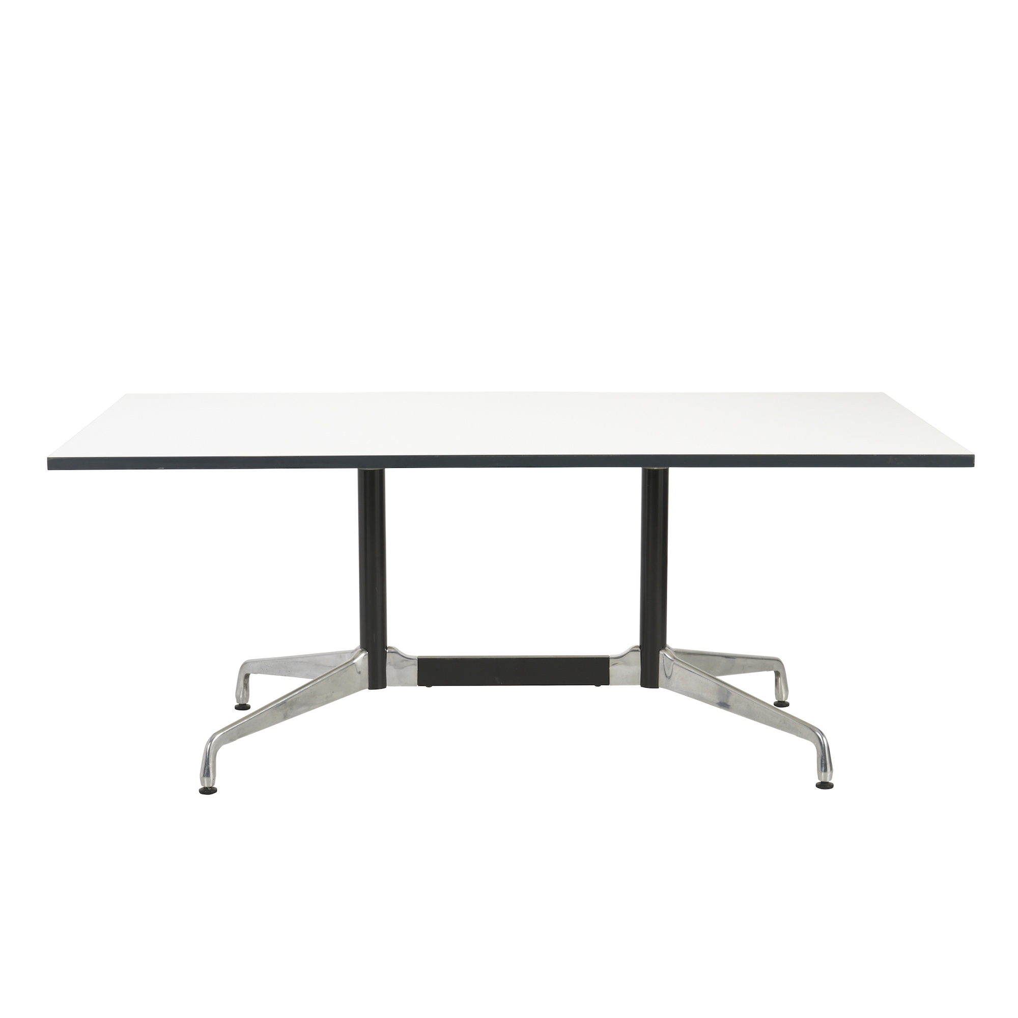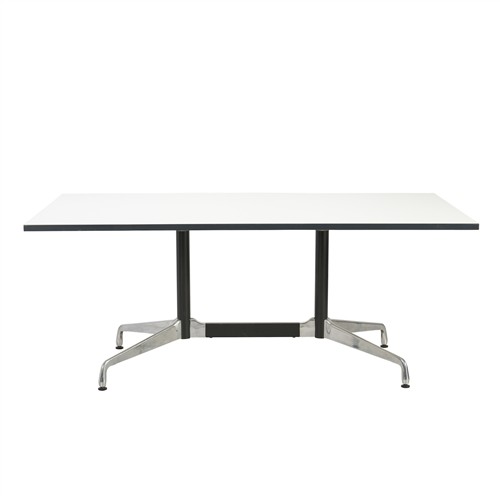 Aluminium segmented base with rectangular laminate top in white with black edge.
