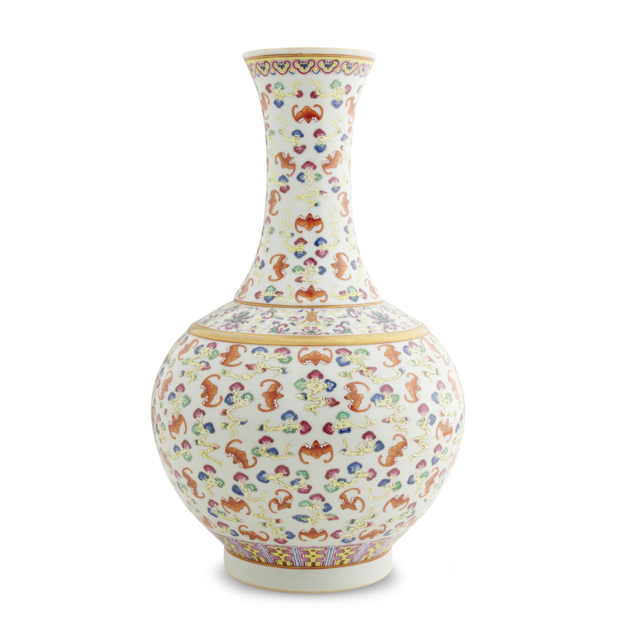 A CHINESE FAMILLE ROSE 'HUNDRED BATS' VASE, GUANGXU SIX-CHARACTER MARK IN IRON RED AND OF THE PERIOD (1875-1908)