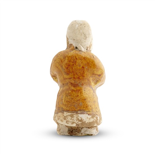 A RARE CHINESE YELLOW-GLAZE FIGURE OF A DWARF, TANG DYNASTY (618 - 907)