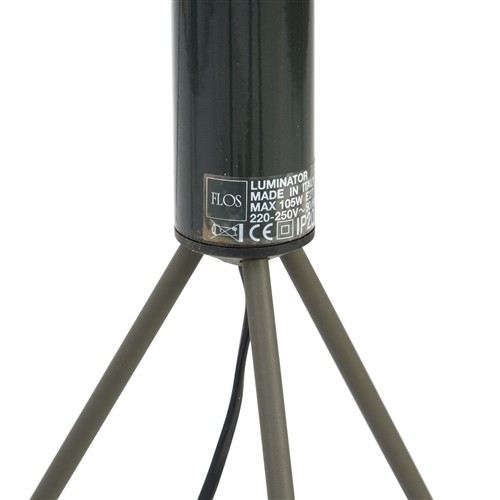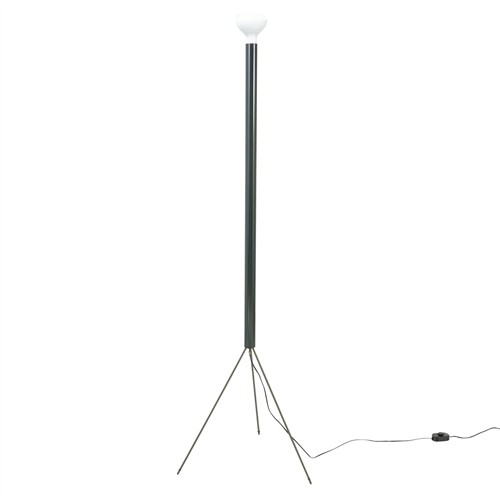 Anthracite grey tubular body with exposed bulb and wire tripod base.