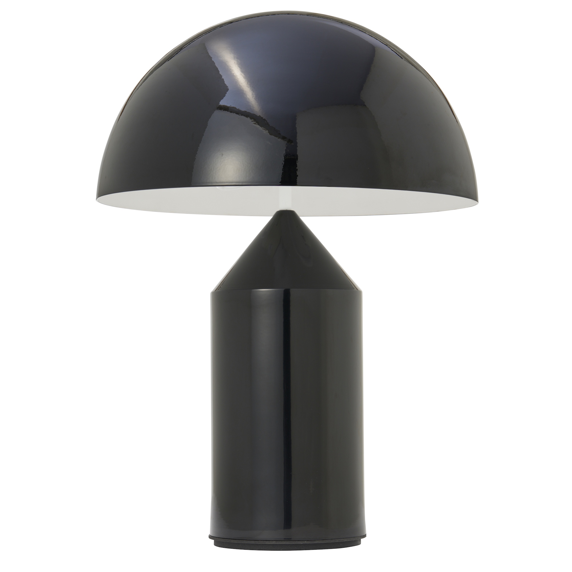 Gloss black powder-coated metal dome shade and base. Size Medium.