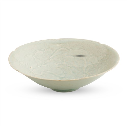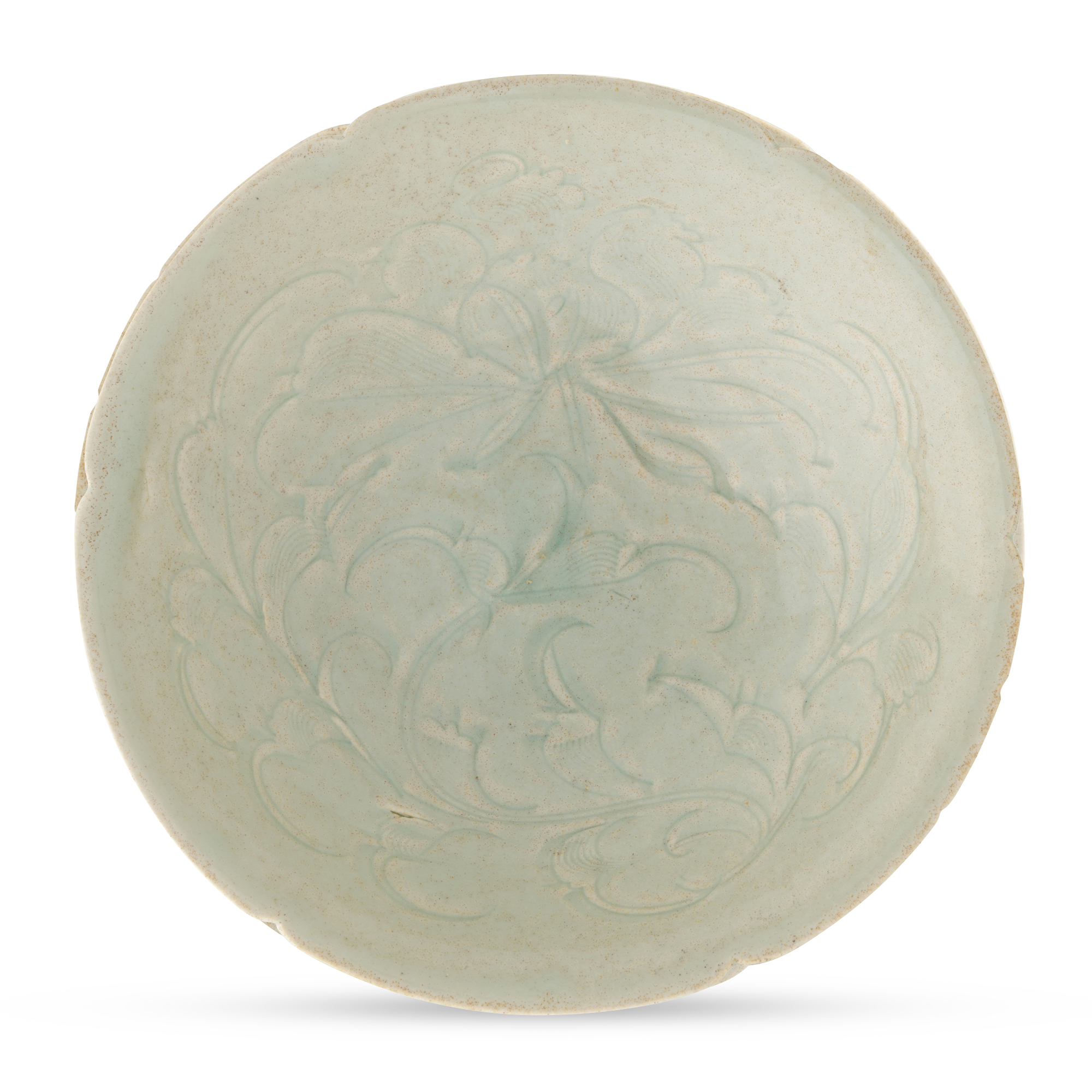 A CHINESE FOLIATE RIM CARVED QINGBAI 'LOTUS' DISH, SOUTHERN SONG DYNASTY (1127 - 1279)