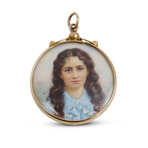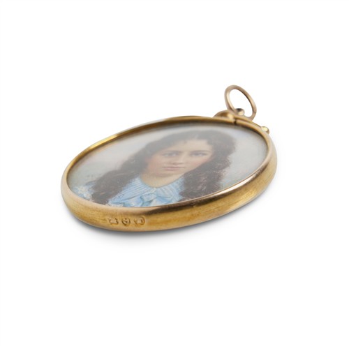 watercolour and gouache on ivory, in a Willis & Sons 9ct gold pendant