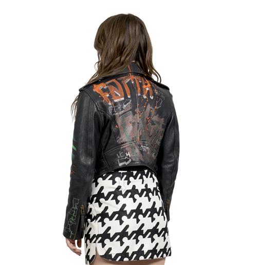 FAITH CONNEXION, GRAFFITI PAINTED LEATHER BIKER JACKET, CIRCA 2016