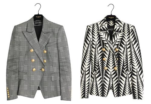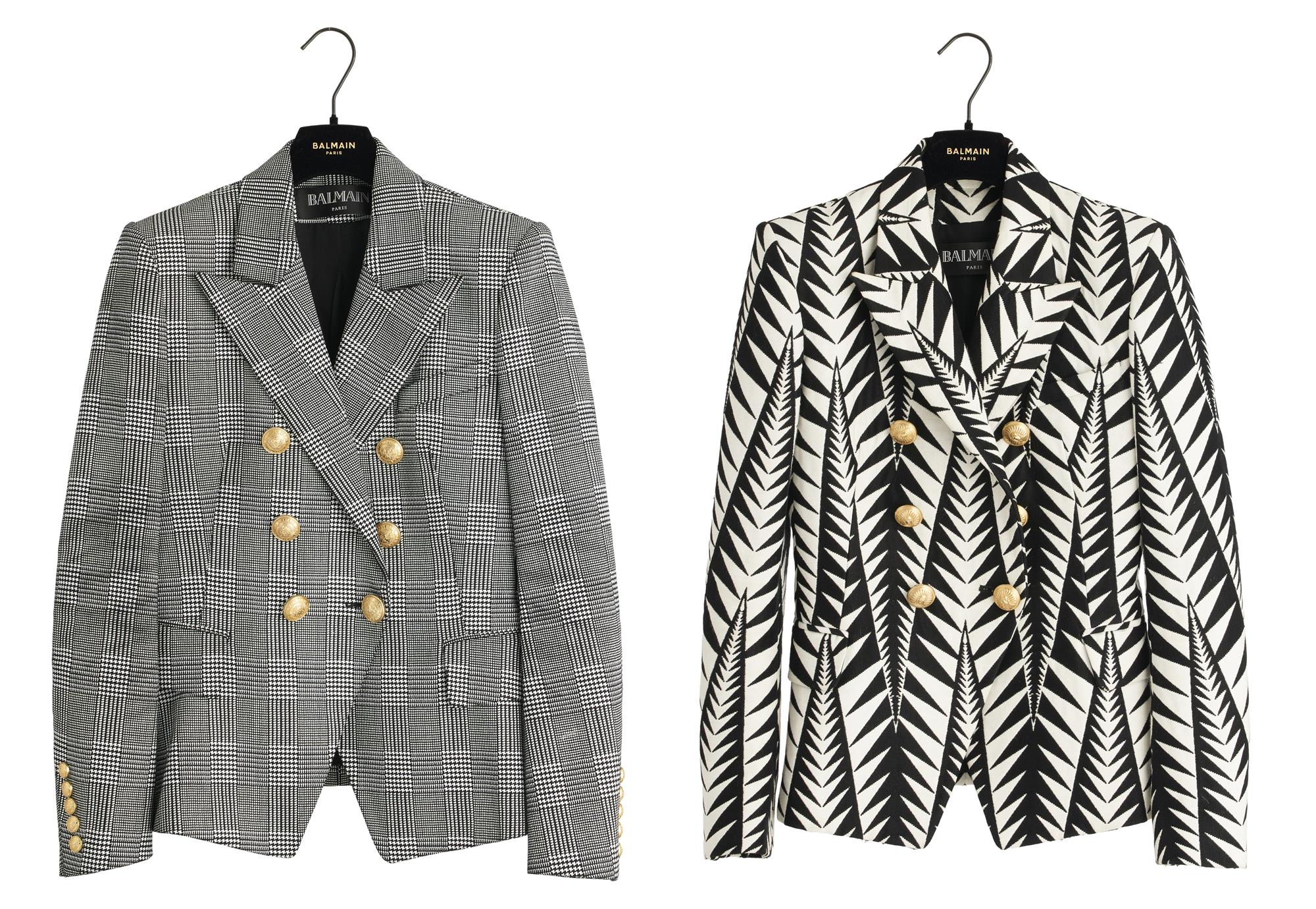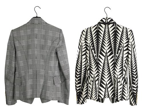 Comprising Prince of Wales check blazer tailored in black and white cotton blend; together with a black and white Chevron jacquard blazer in cotton blend, both marked size 38.