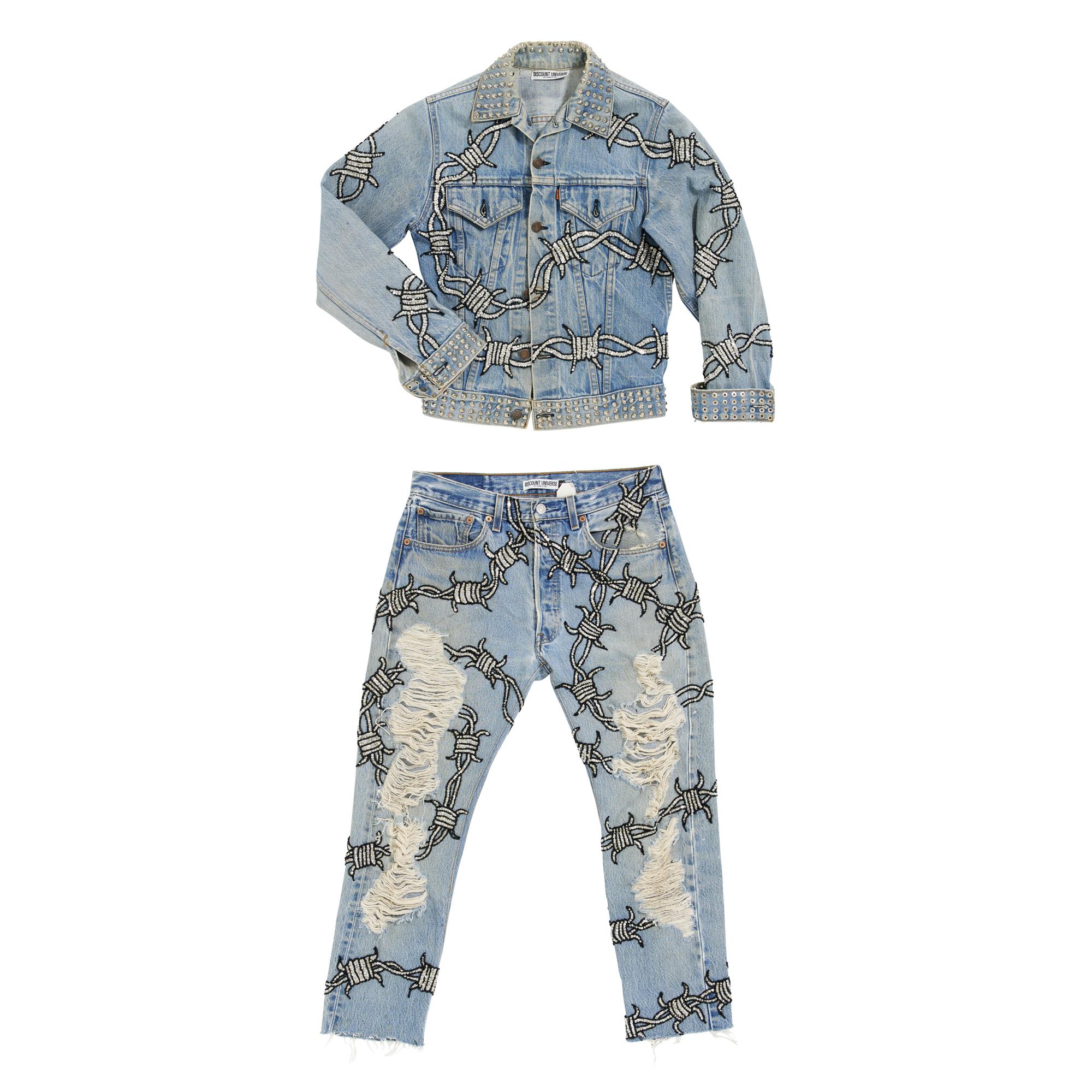DISCOUNT UNIVERSE, EMBELLISHED DENIM JACKET AND JEANS