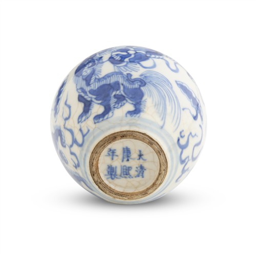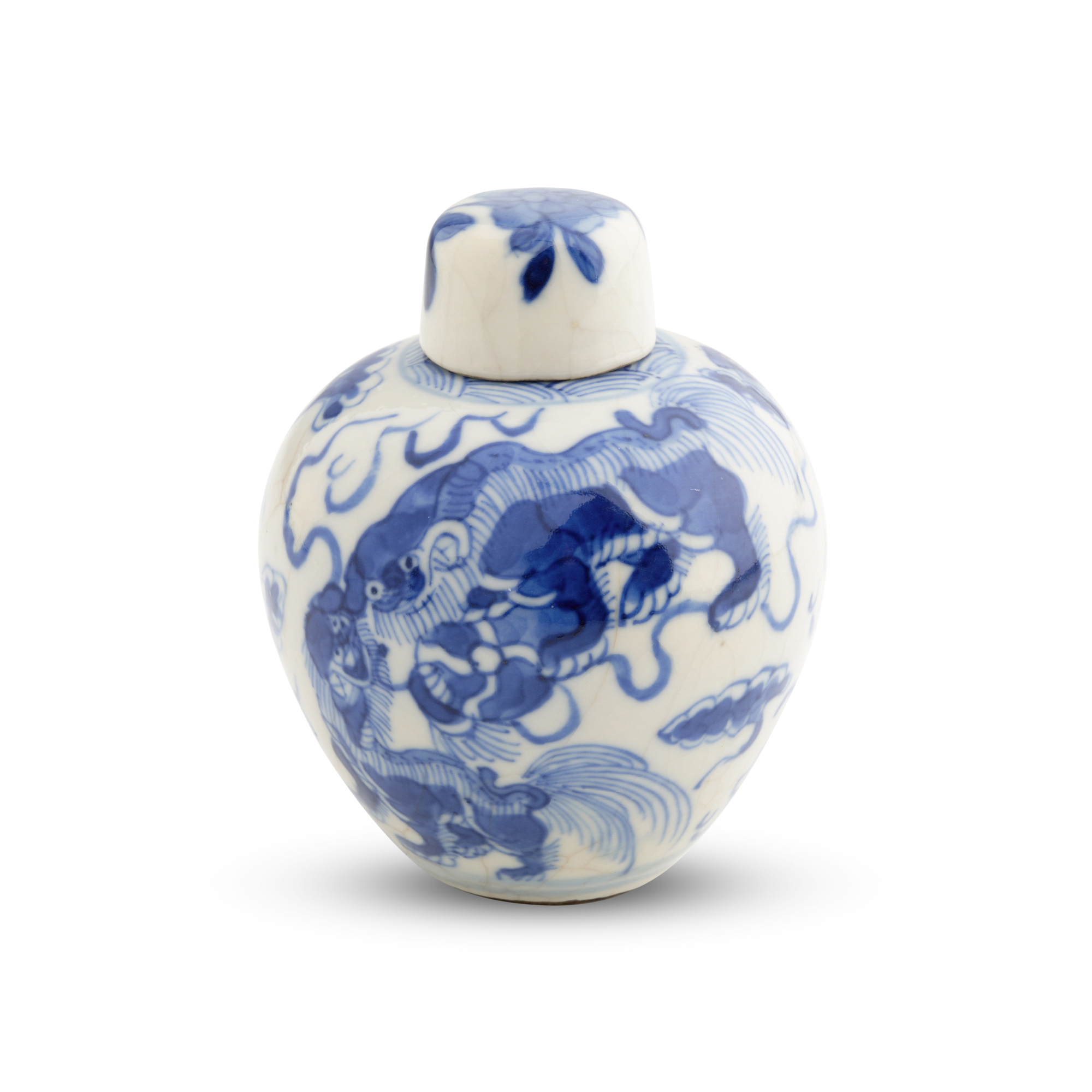 A CHINESE SOFT PASTE BLUE AND WHITE JAR AND COVER, KANGXI MARK, QING DYNASTY (1644 - 1911)