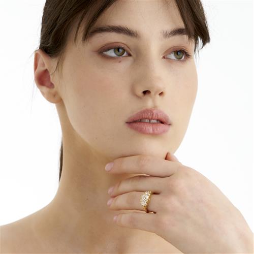 The central diamond exhibits the rare gemmological phenomenon of a diamond crystal enclosed within the host diamond. Such formations occur when a smaller crystal becomes encapsulated during the growth process under extreme pressure and temperature conditions in the earth's mantle. This uncommon feature provides valuable insight into the complex geological conditions under which diamonds form.