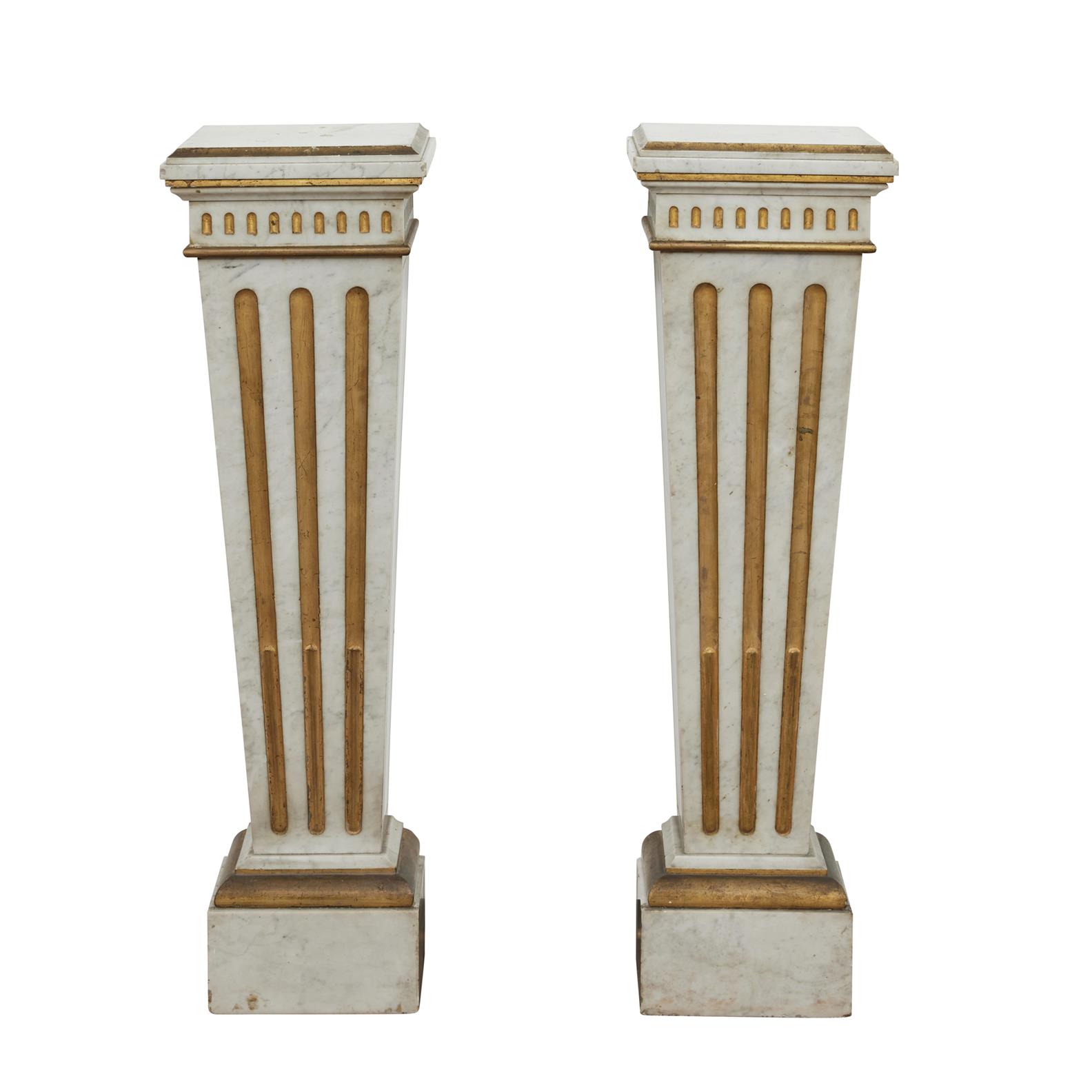 Late 19th century, each of tapering square section with gilt stop fluted decoration.