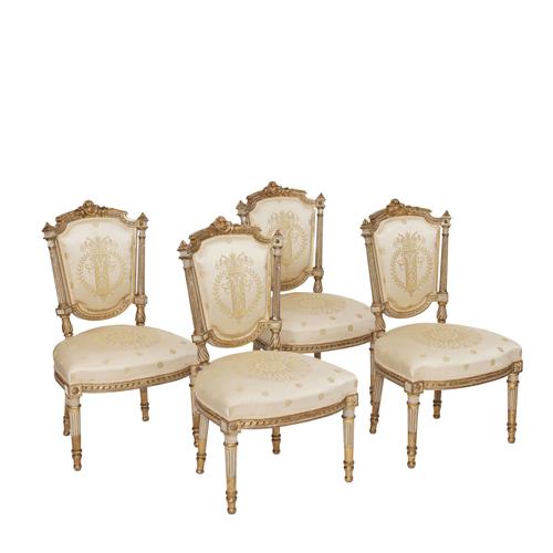 A SET OF TWENTY LOUIS XV STYLE SILVER PAINTED DINING CHAIRS