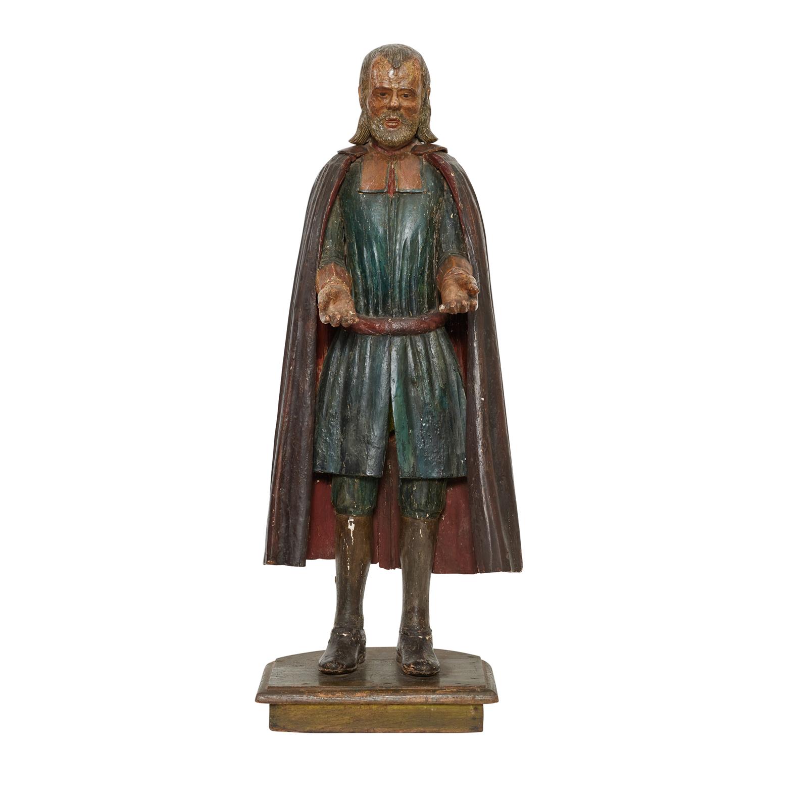 AN ITALIAN PROVINCIAL CARVED AND POLYCHROMED STATUE OF A CLERIC