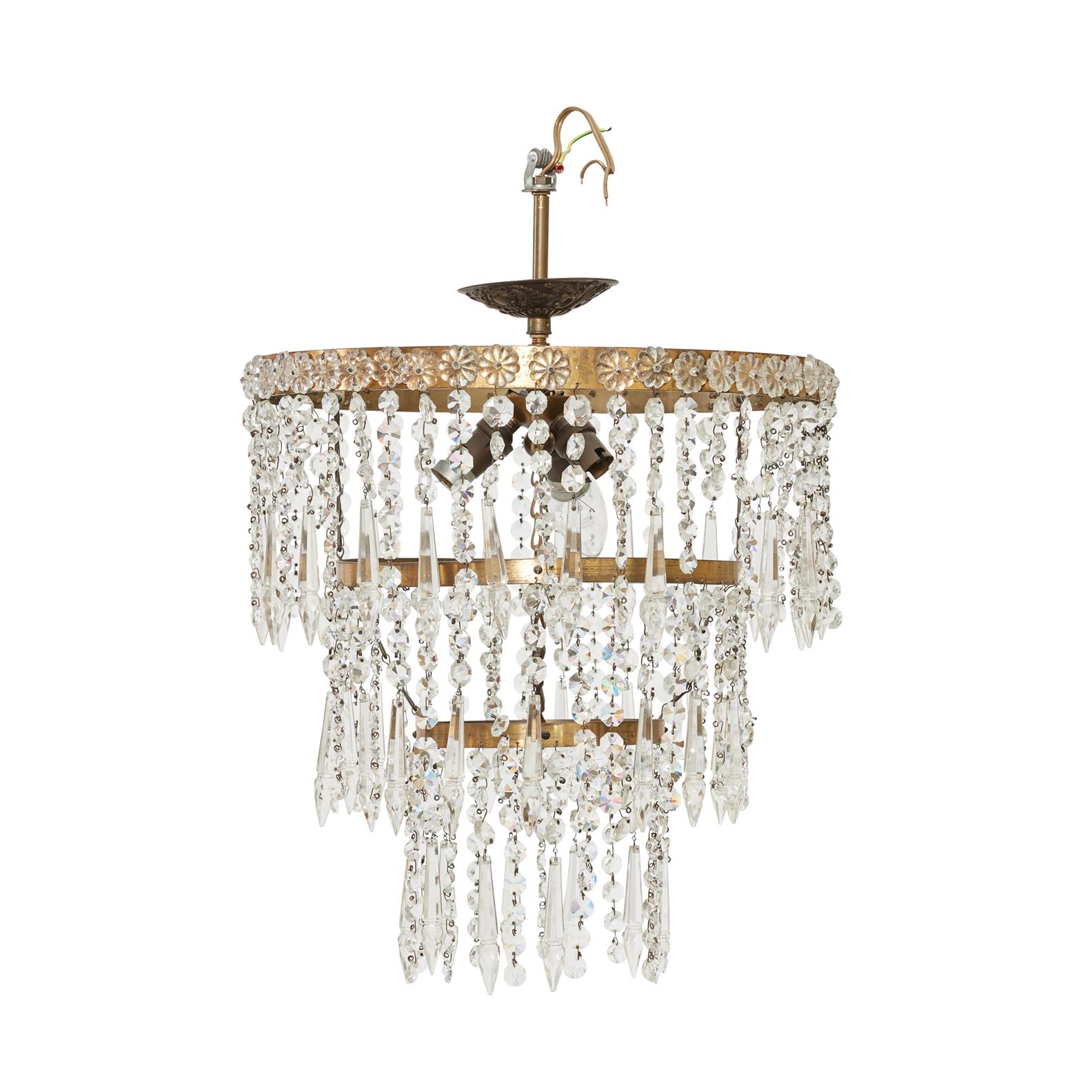 A FRENCH BRASS AND CRYSTAL THREE-LIGHT CHANDELIER