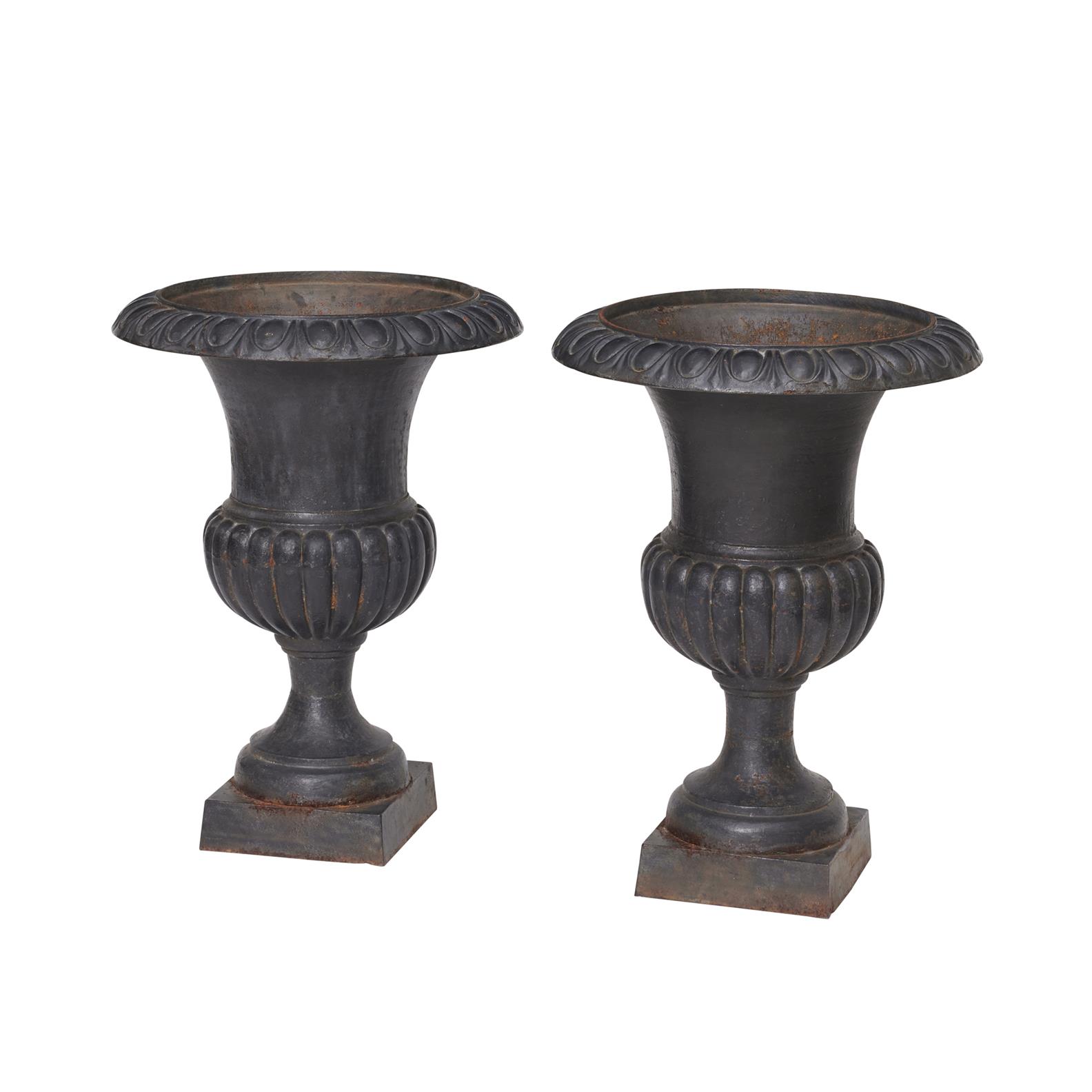 A PAIR OF SWEDISH CAST IRON CAMPANA URNS