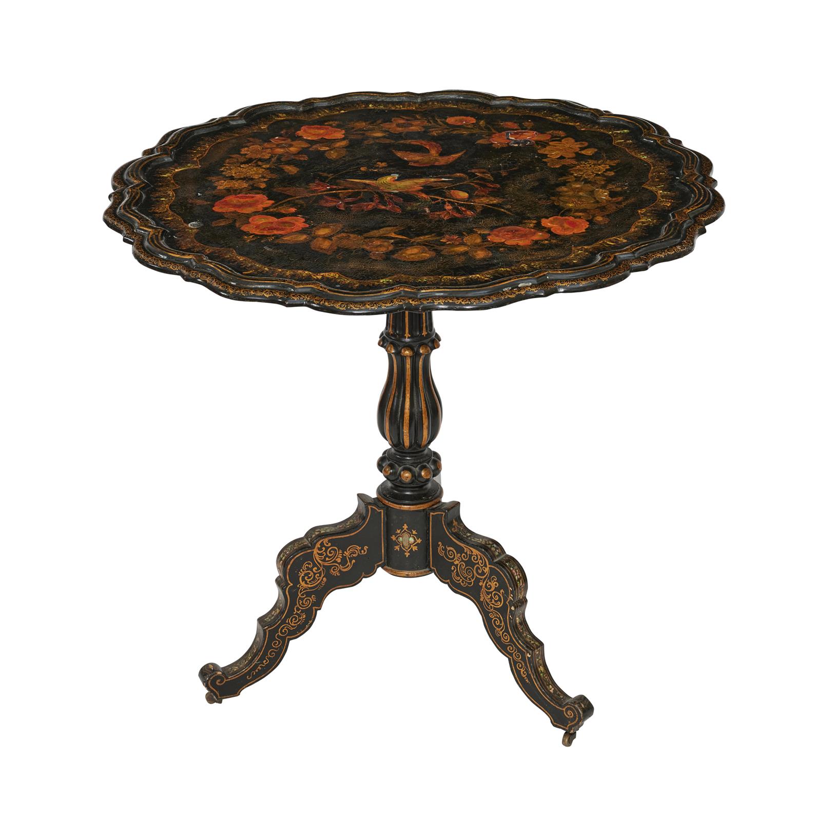 A VICTORIAN BLACK LACQUER AND MOTHER OF PEARL INLAID OCCASIONAL TABLE