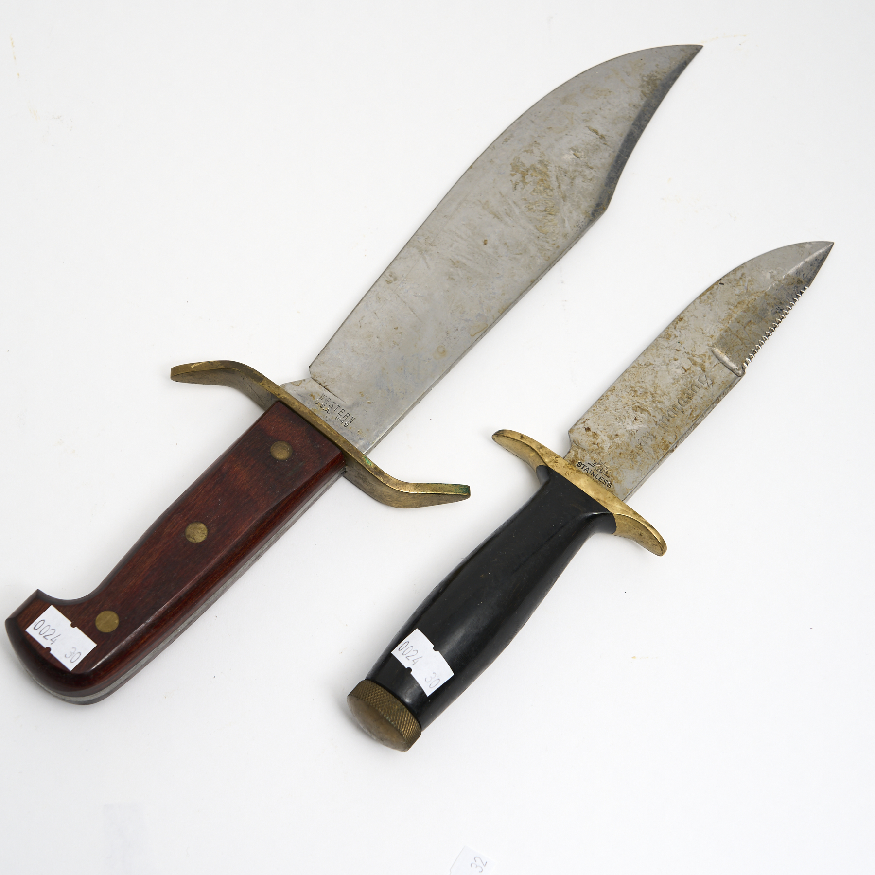 A CARL SCHLIEPER SURVIVAL KNIFE AND A WESTERN USA BOWIE KNIFE L.36.5CM *Please note the purchaser of this item must possess a weapons licence prior to bidding. A copy of the licence will be taken upon collection, please ask a staff member to view this item.