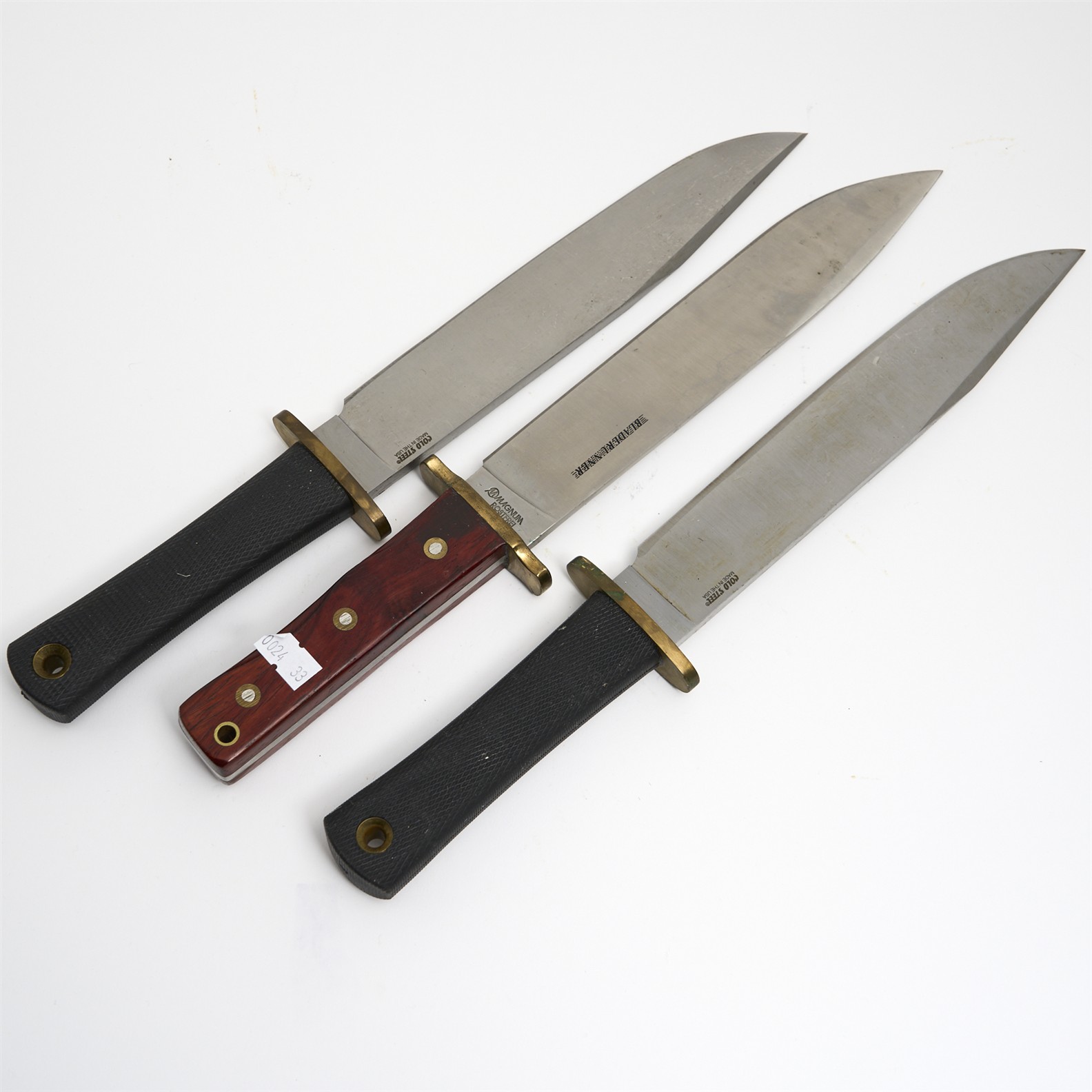 THREE KNIVES INCLUDING TWO COLDSTEEL TRAILMASTERS AND A ROSTFREI MAGNUM BLADERUNNER L.36.5CM (LONGEST) *Please note the purchaser of this item must possess a weapons licence prior to bidding. A copy of the licence will be taken upon collection, please ask a staff member to view this item.