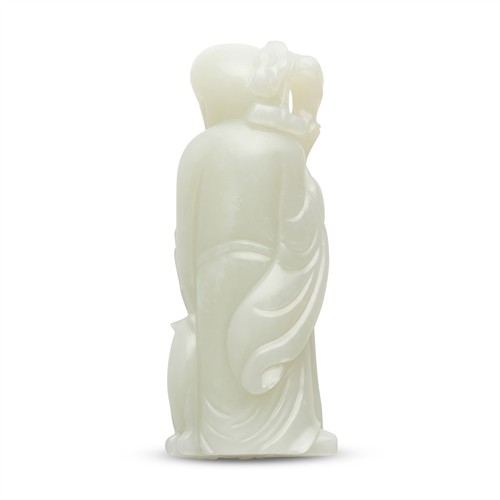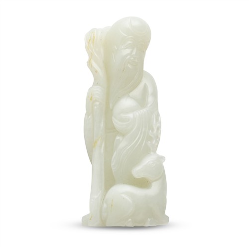 A CHINESE WHITE JADE FIGURE OF SHOULAO AND DEER, QING DYNASTY (1644 - 1911)