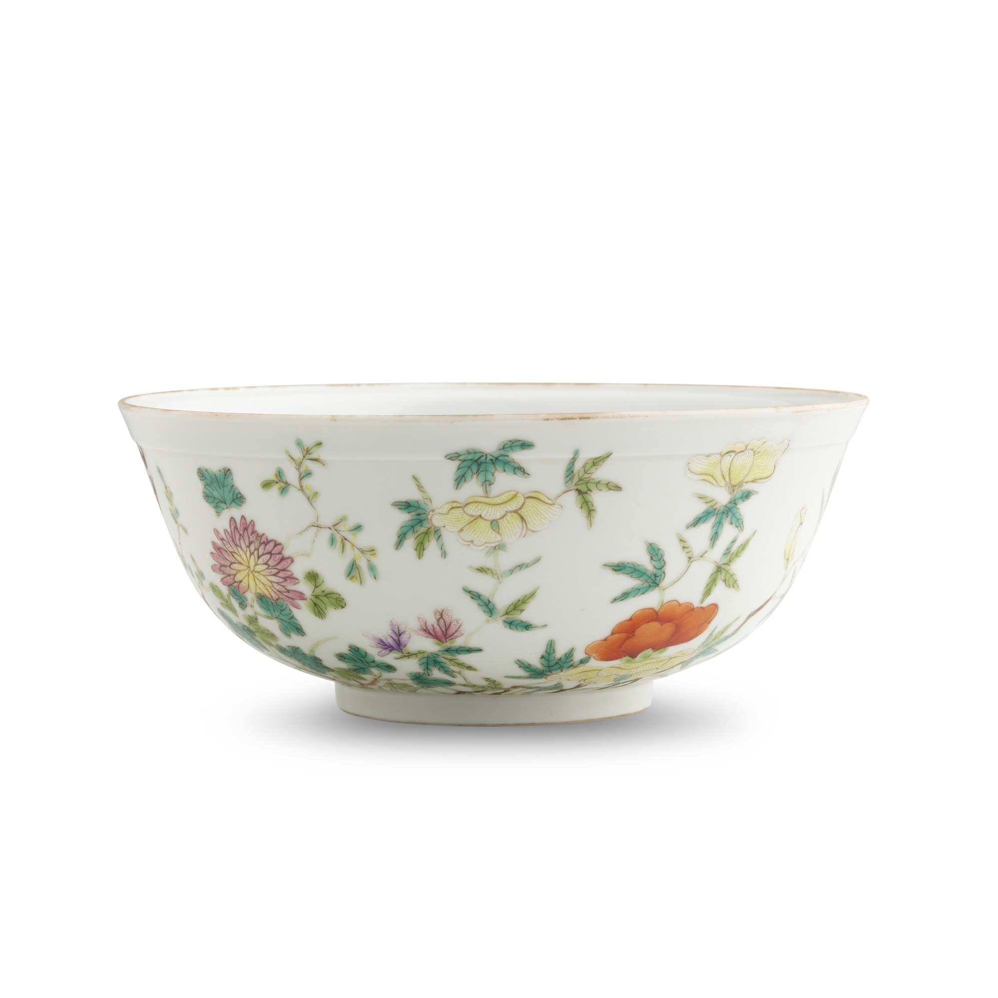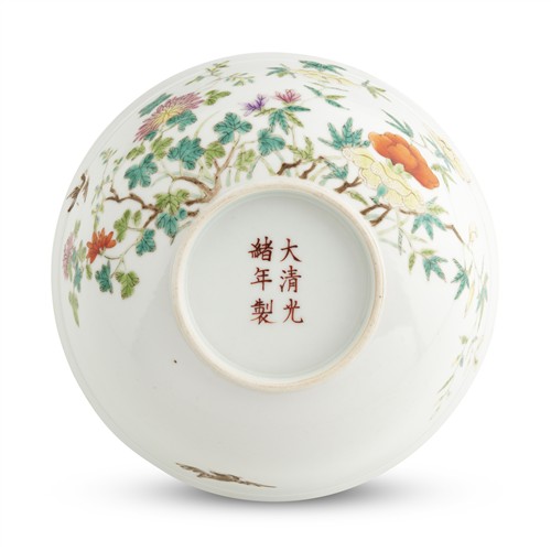 A CHINESE FAMILLE-ROSE 'BIRDS AND FLOWERS' BOWL, GUANGXU SIX-CHARACTER IRON RED MARK AND OF THE PERIOD (1875 - 1908)