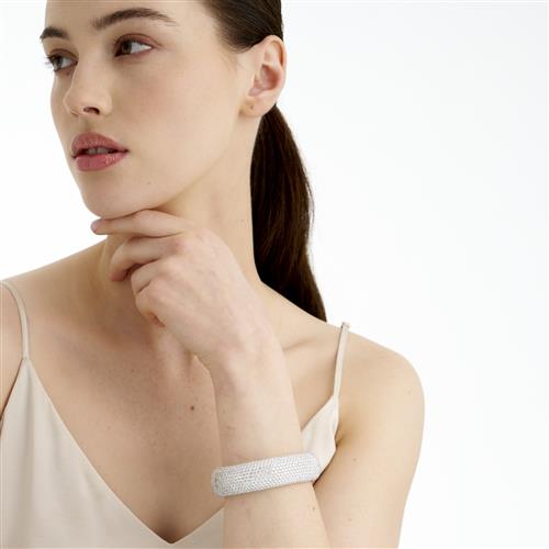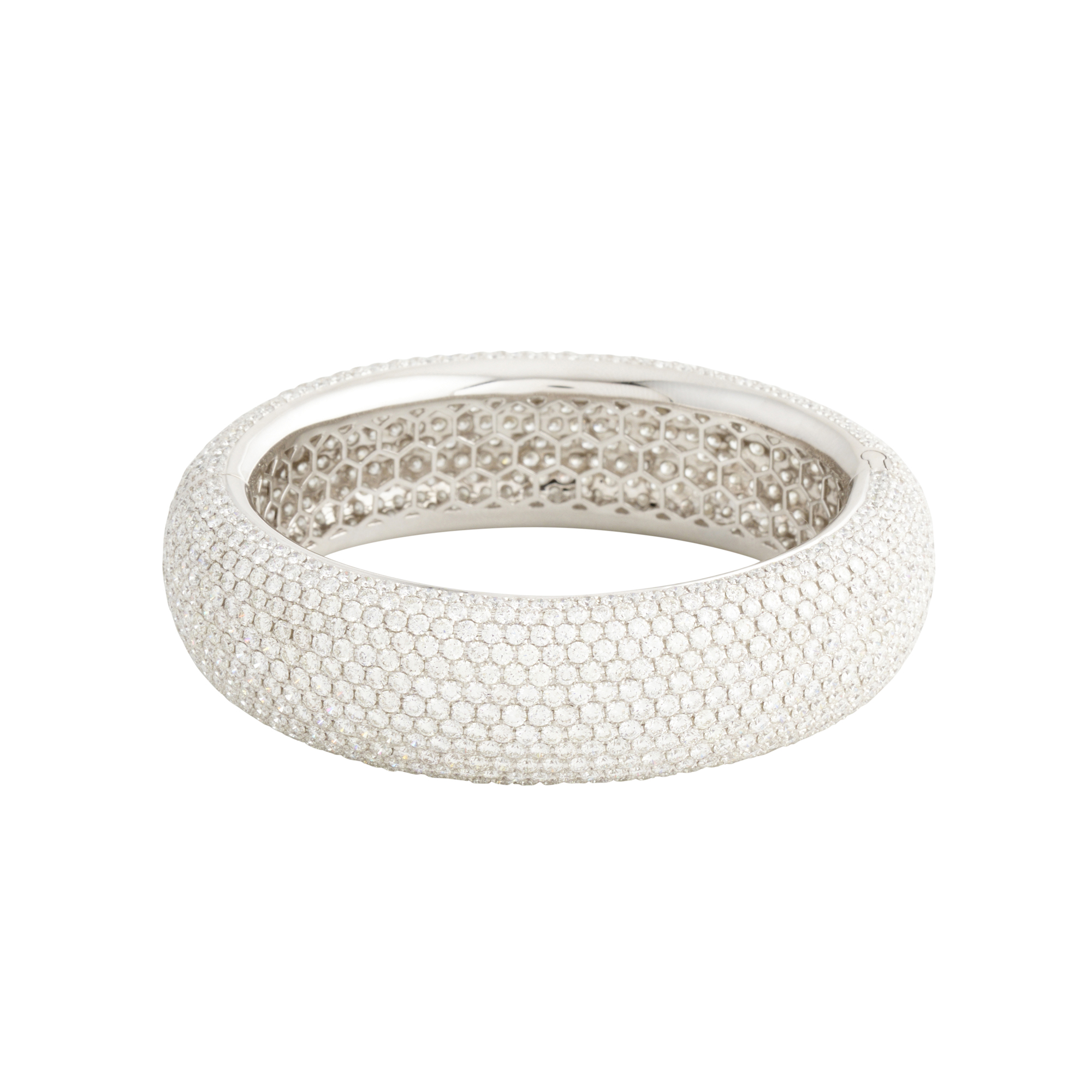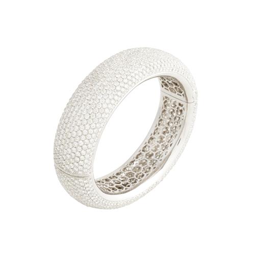 The hinged oval bangle, pavé-set throughout with one thousand and three round brilliant-cut diamonds together weighing approximately 32.26 carats, inner circumference 175mm, gross weight approximately 80.7 grams.