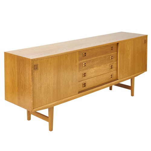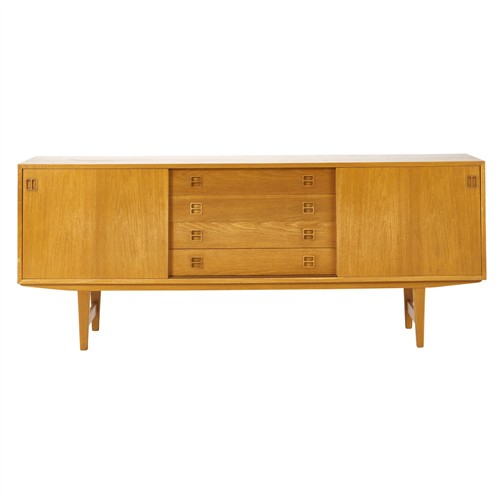The oak sideboard is in good structural condition. All drawers run well with felt lining to lower drawer. The right hand cupboard slides well, very slight sticky movement to left hand side door. Feint scuffs to top and feint round water mark. Overall presents well.