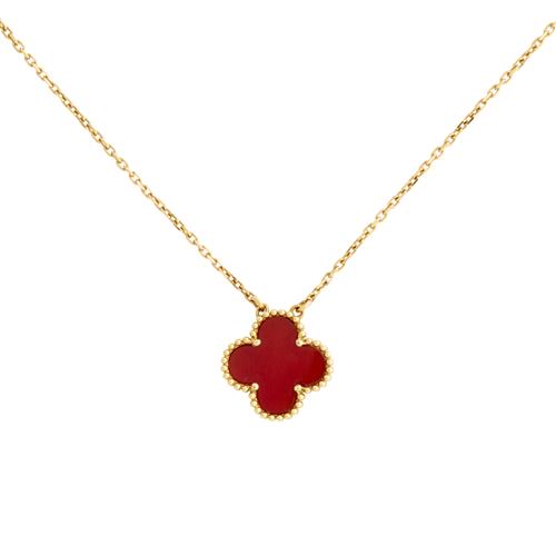 VAN CLEEF & ARPELS, 18CT GOLD AND CARNELIAN 'ALHAMBRA' NECKLACE