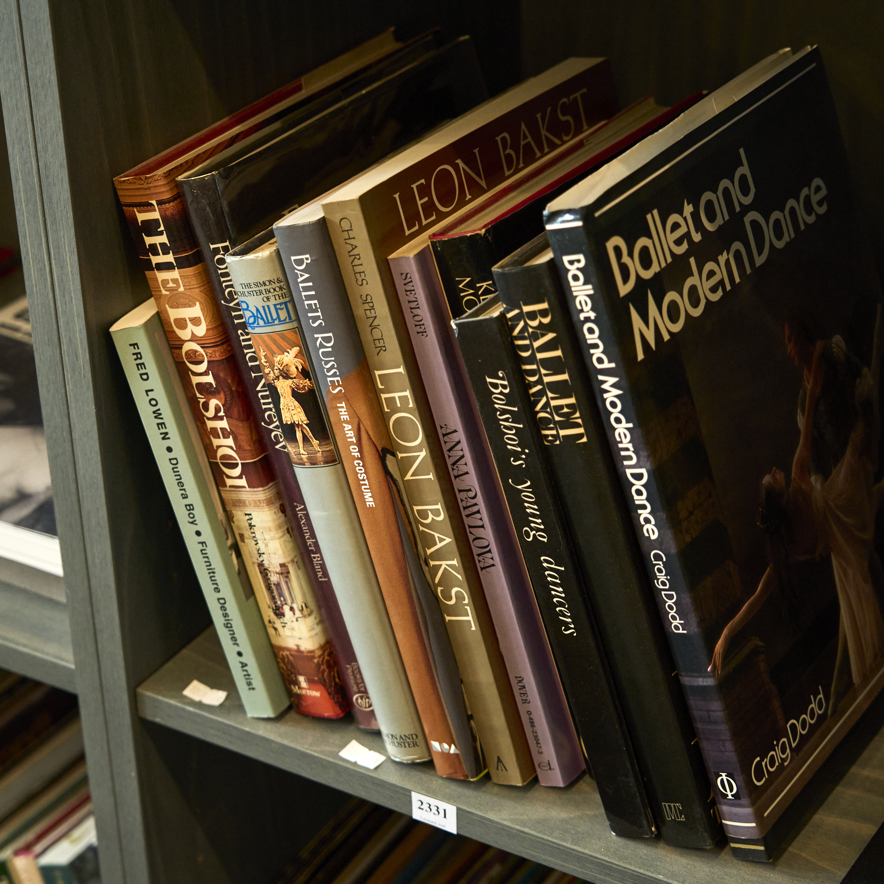 A PART SHELF OF BOOKS ON BALLET INCLUDING 'THE BOLSHOI', 'FONTEYN AND NUREYEV', AND 'BALLET RUSSES'
