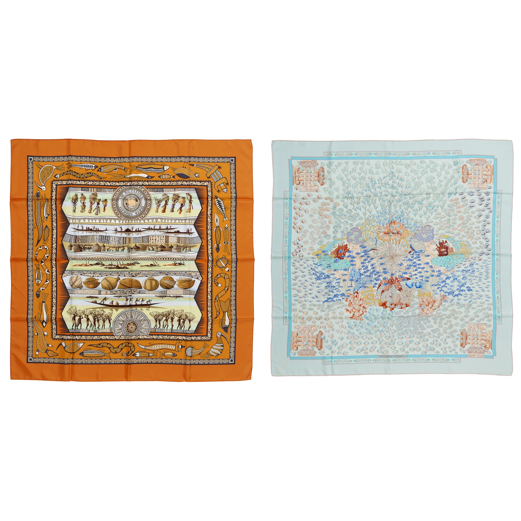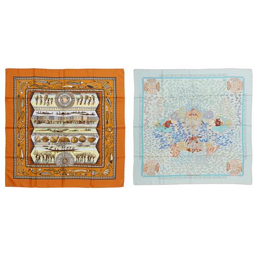 HERMÈS, DUO OF SILK CARRÉ "RECONTRE OCÉANE" AND "VIE DU FLEUVE"