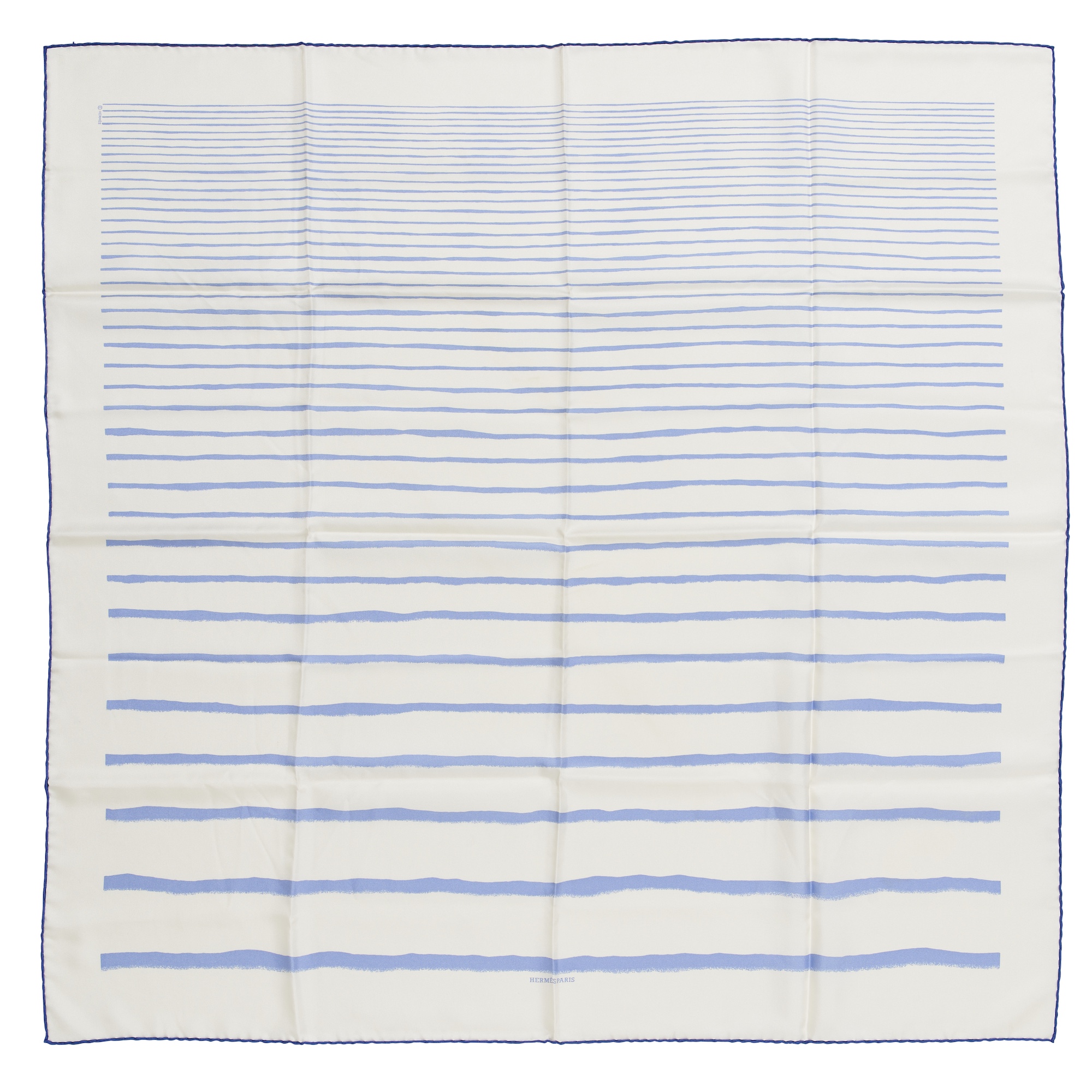 Design by J.L.F. Duvivier with painterly stripe design in tones of blue and ivory, measures 90 cm. From a private single-owner collection.