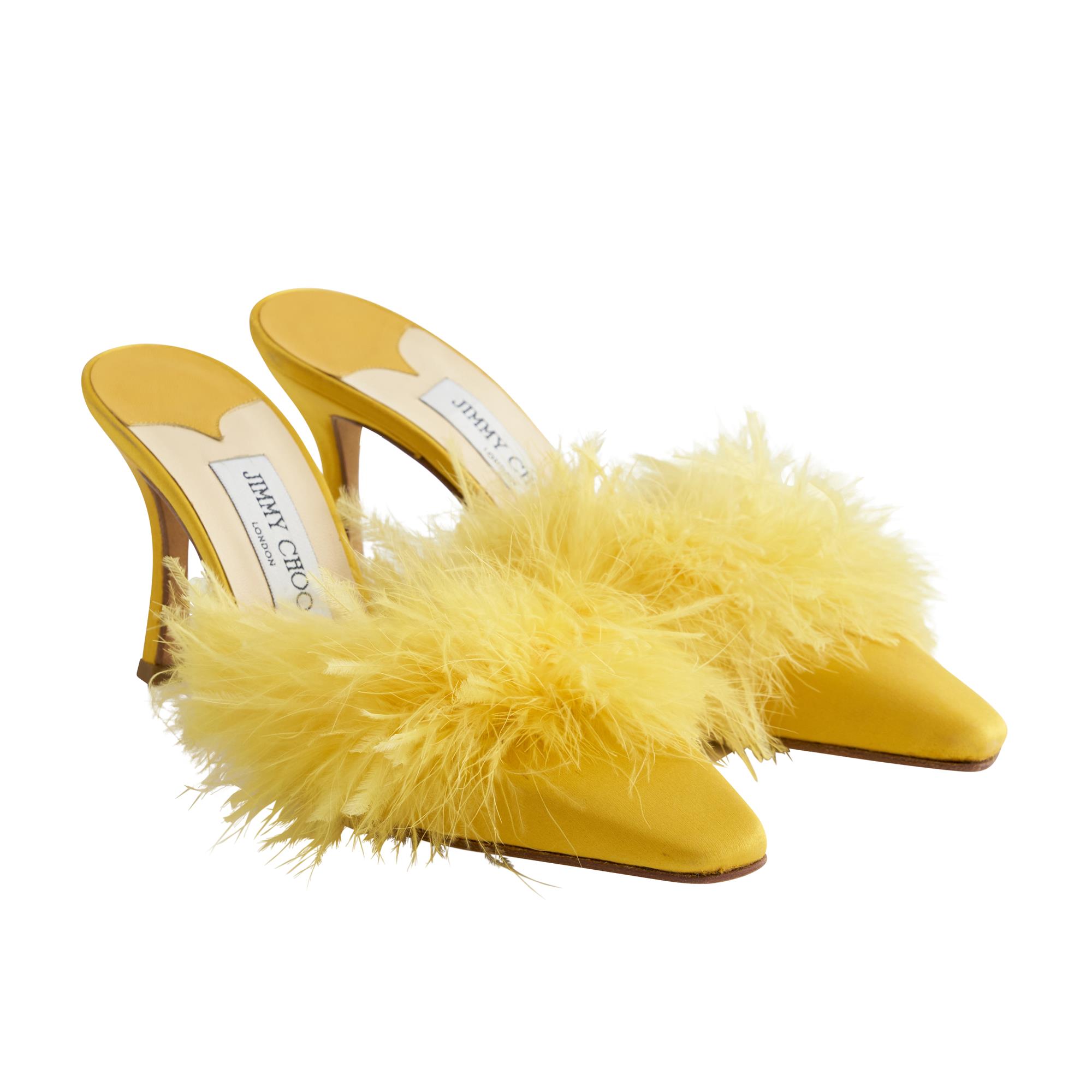 JIMMY CHOO, PAIR OF SILK AND FEATHER MULES, CIRCA EARLY 2000s