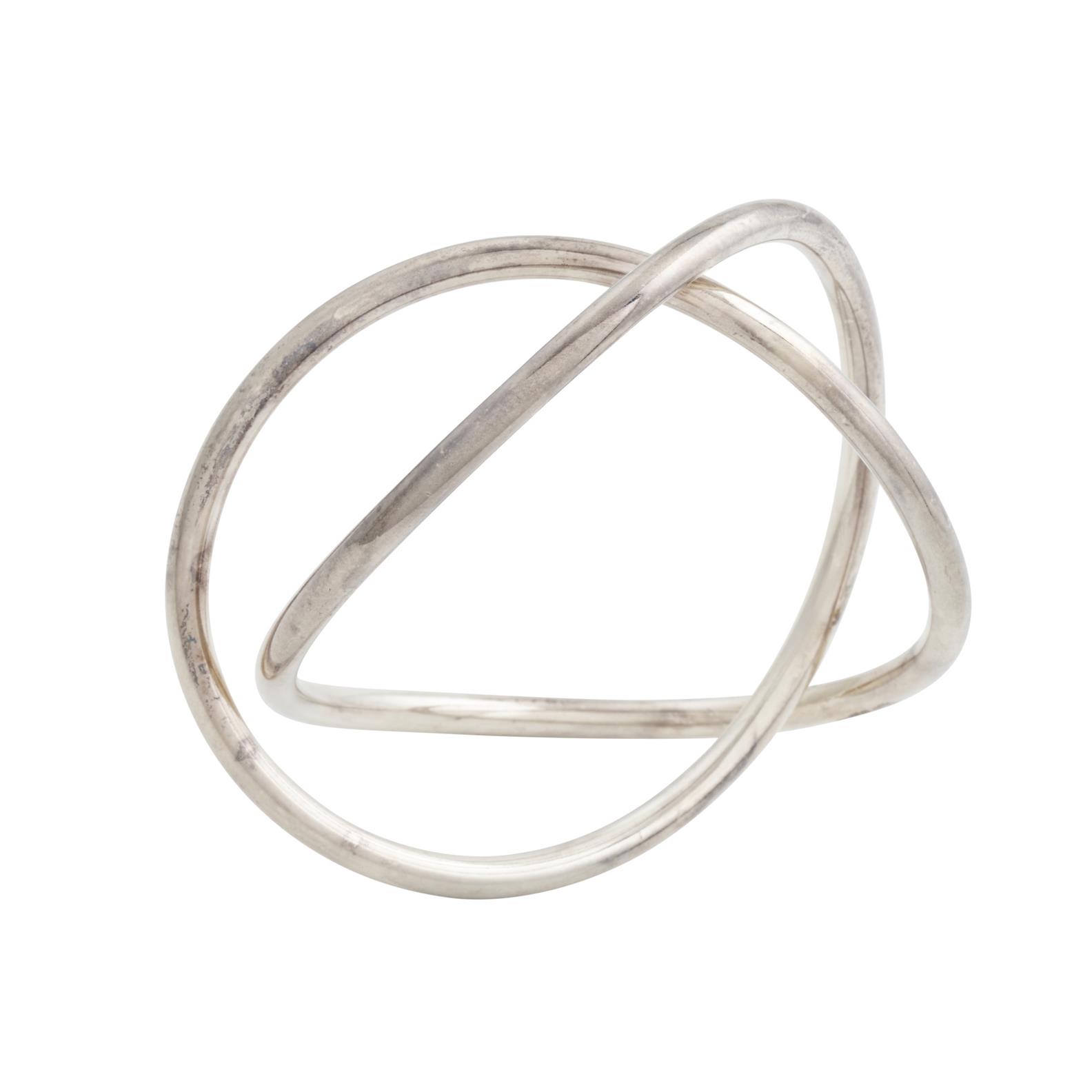 Of continuous overlapping design, mounted in sterling silver, inner circumference 190mm, gross weight approximately 78.4 grams, signed Georg Jensen.