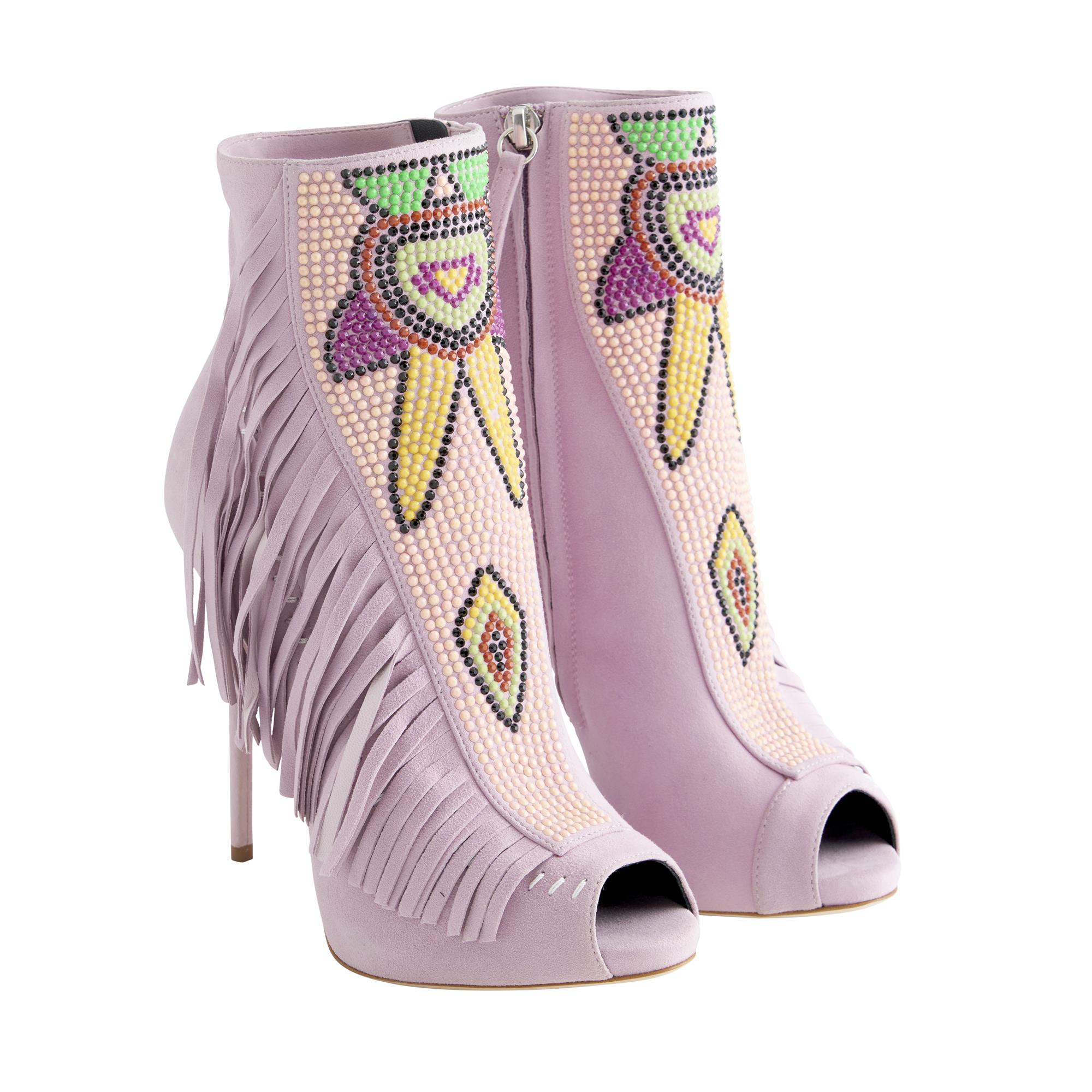 Styled in pink suede leather featuring tassel detail and embellished with tribal inspired bead detail, marked size 37.