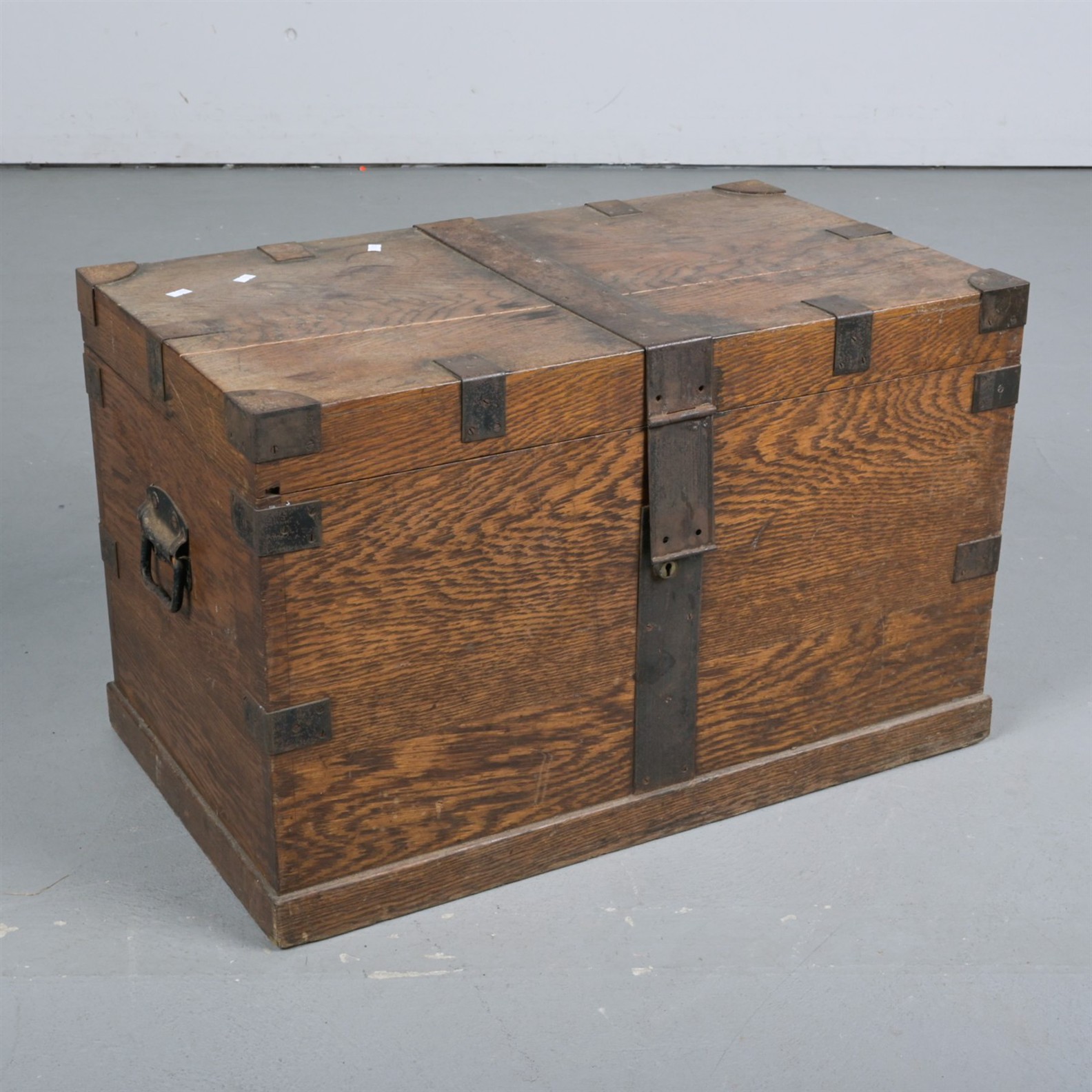 AN EARLY 20th CENTURY IRON-BOUND OAK CHEST (48CM H X 75CM W X 44CM D)