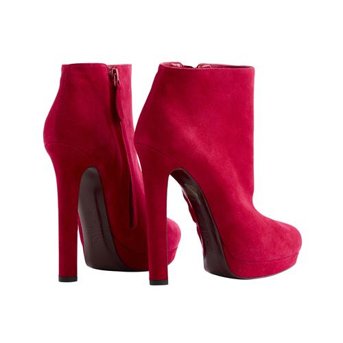 Styled in cherry red suede leather, designed with almond toe and heel measuring 12cm, marked size 37.